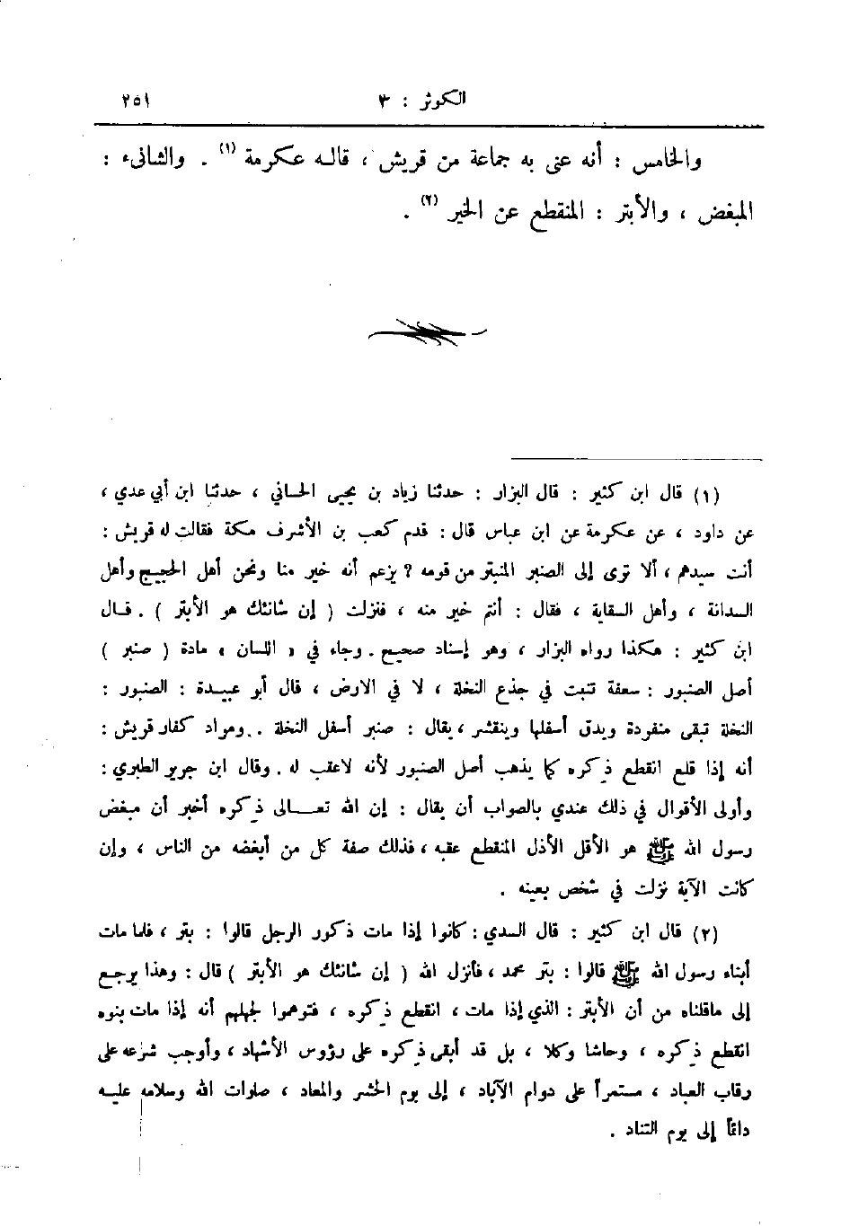 والخامس أنه عنى به جماعة من قريش قاله عكرمة والشانىء المبغض والأبتر المنقطع عن الخير