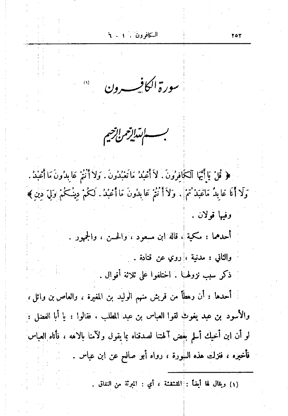 قل يا أيها الكافرون لا أعبد ما تعبدون ولا أنتم عابدون ما أعبد ولا أنا عابد ما عبدتم ولا أنتم عابدون ما أعبد لكم دينكم ولي دين
