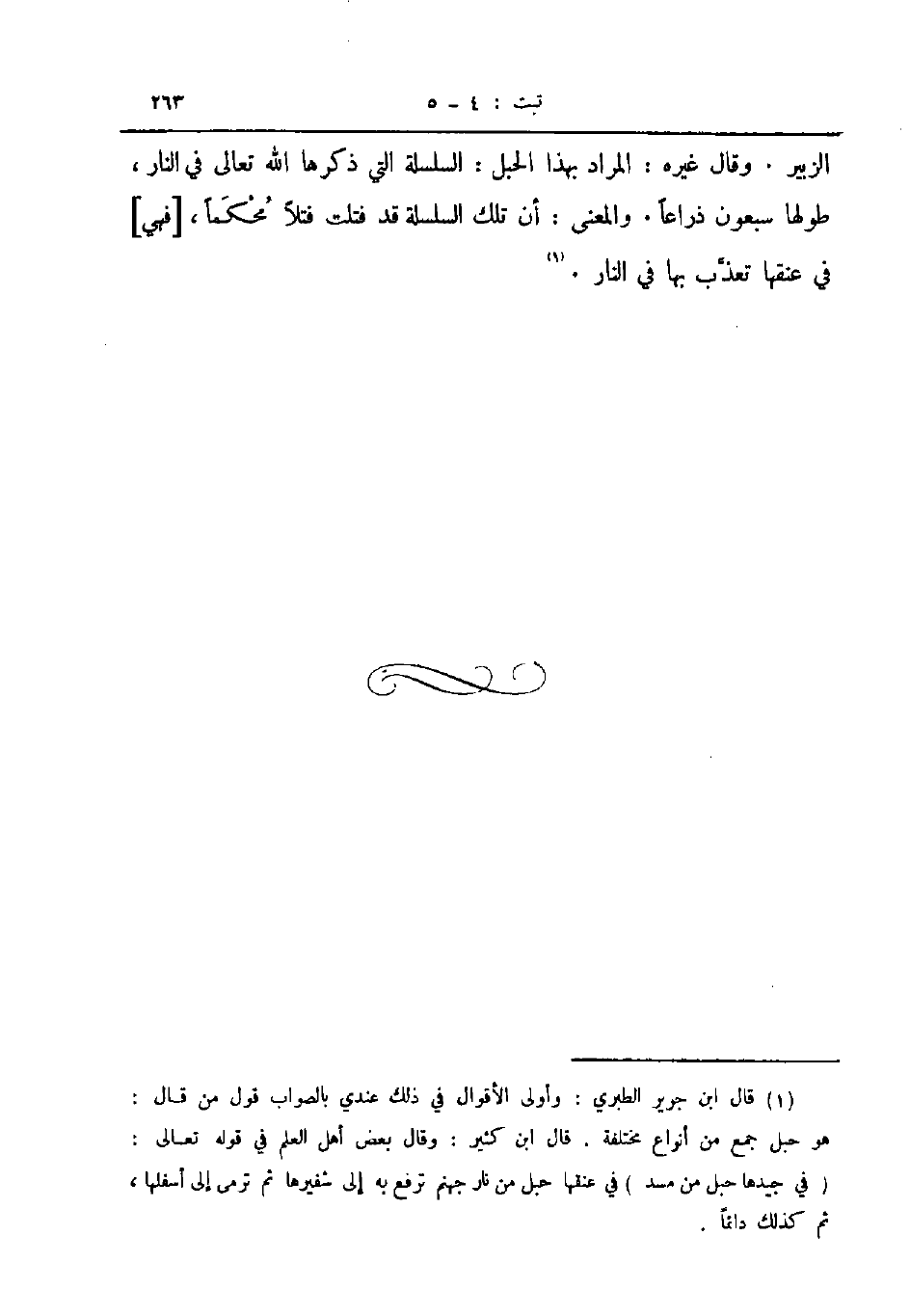 الزبير وقال غيره المراد بهذا الحبل السلسلةالتي ذكرها الله تعالى في النار طولها سبعون ذراعا والمعنى أن تلك السلسلة قد فتلت فتلا محكما فهي في عنقها تعذب بها في النار