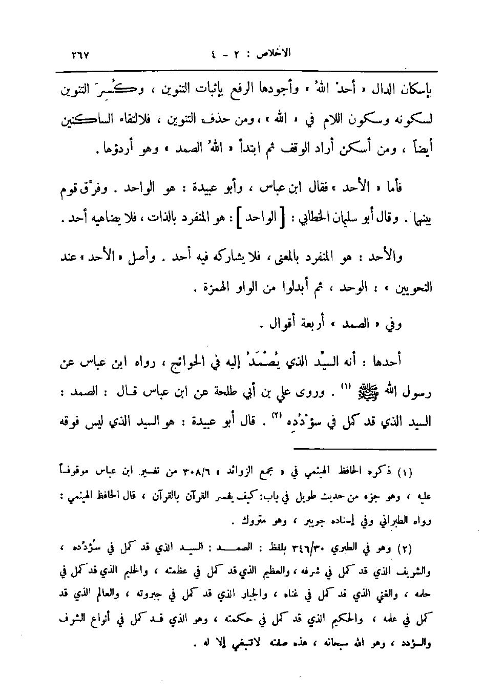 وفي الصمد أربعة أقوال