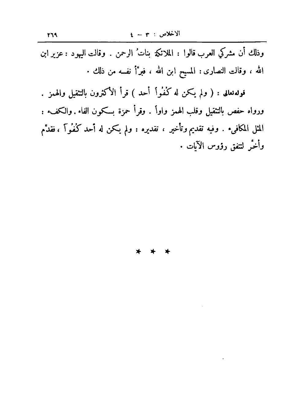 قوله تعالى ولم يكن له كفوا أحد قرأ الأكثرون بالتثقيل والهمز