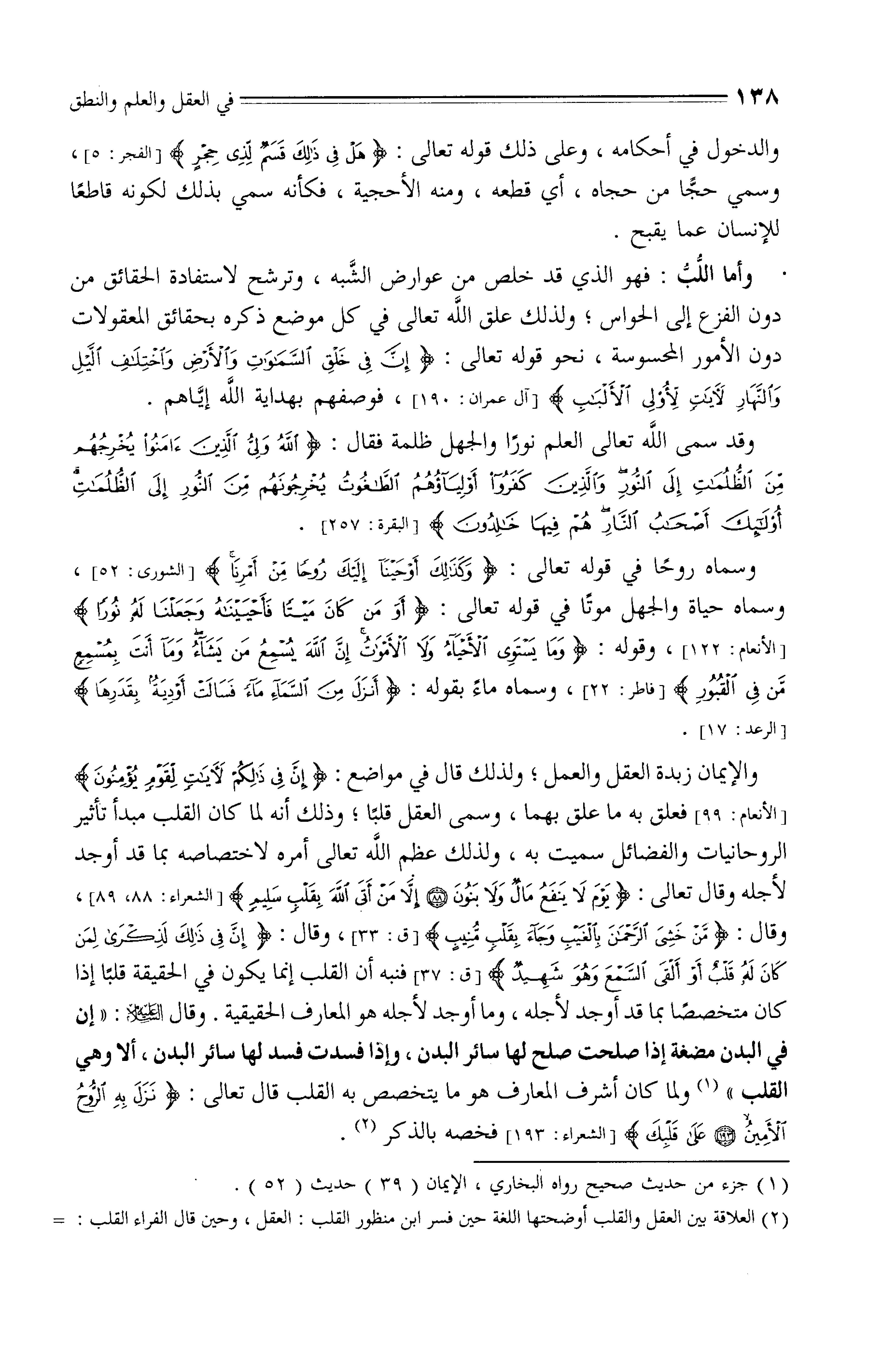 فعلق به ما علق بهما، وسمى العقل قلبًا، وذلك أنه لما كان القلب مبدأ تأثير