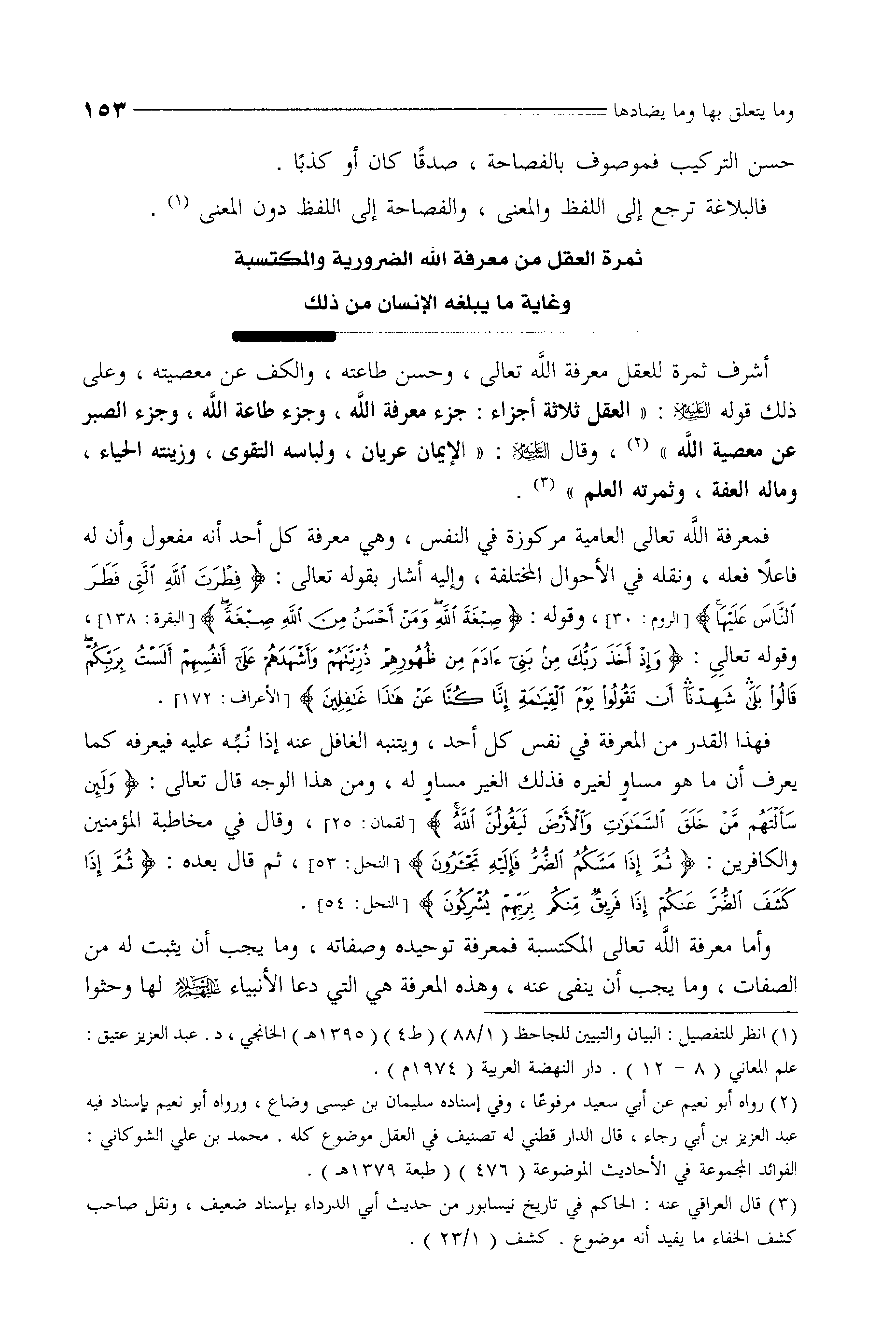 ثمرة العقل من معرفة الله الضرورية والمكتسبة وغاية ما يبلغه الإنسان من ذلك