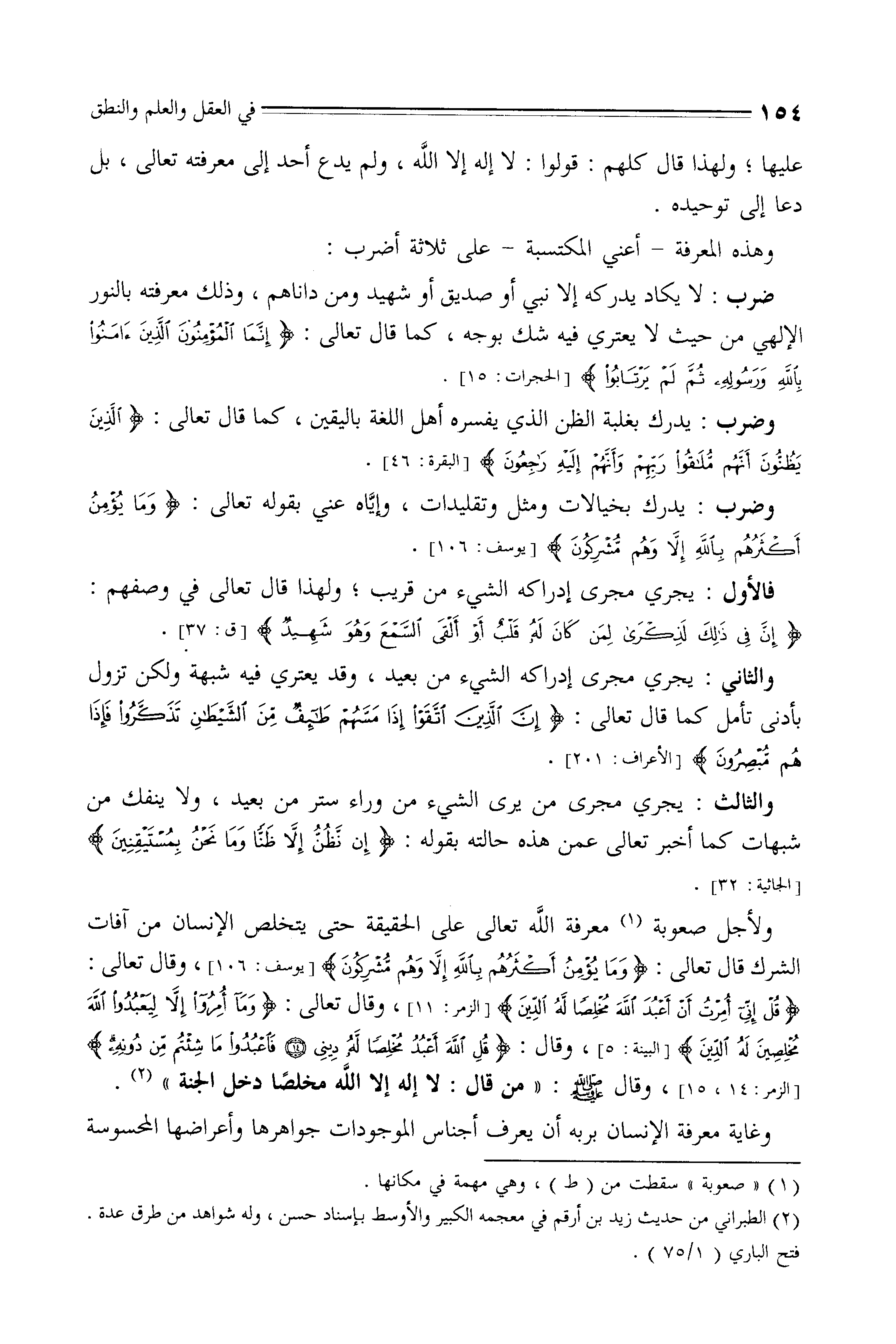 ضرب: لا يكاد يدركه إلا نبي أو صديق أو شهيد ومن داناهم، وذلك معرفته بالنور الإلهي من حيث لا يعتري فيه شك بوجه، كما قال تعالى: (إِإِنَّمَا الْمُؤْمِنُونَ الَّذِينَ آمَنُوا بِاللَّهِ وَرَسُولِهِ ثُمَّ لَمْ يَرْتَابُوا) .