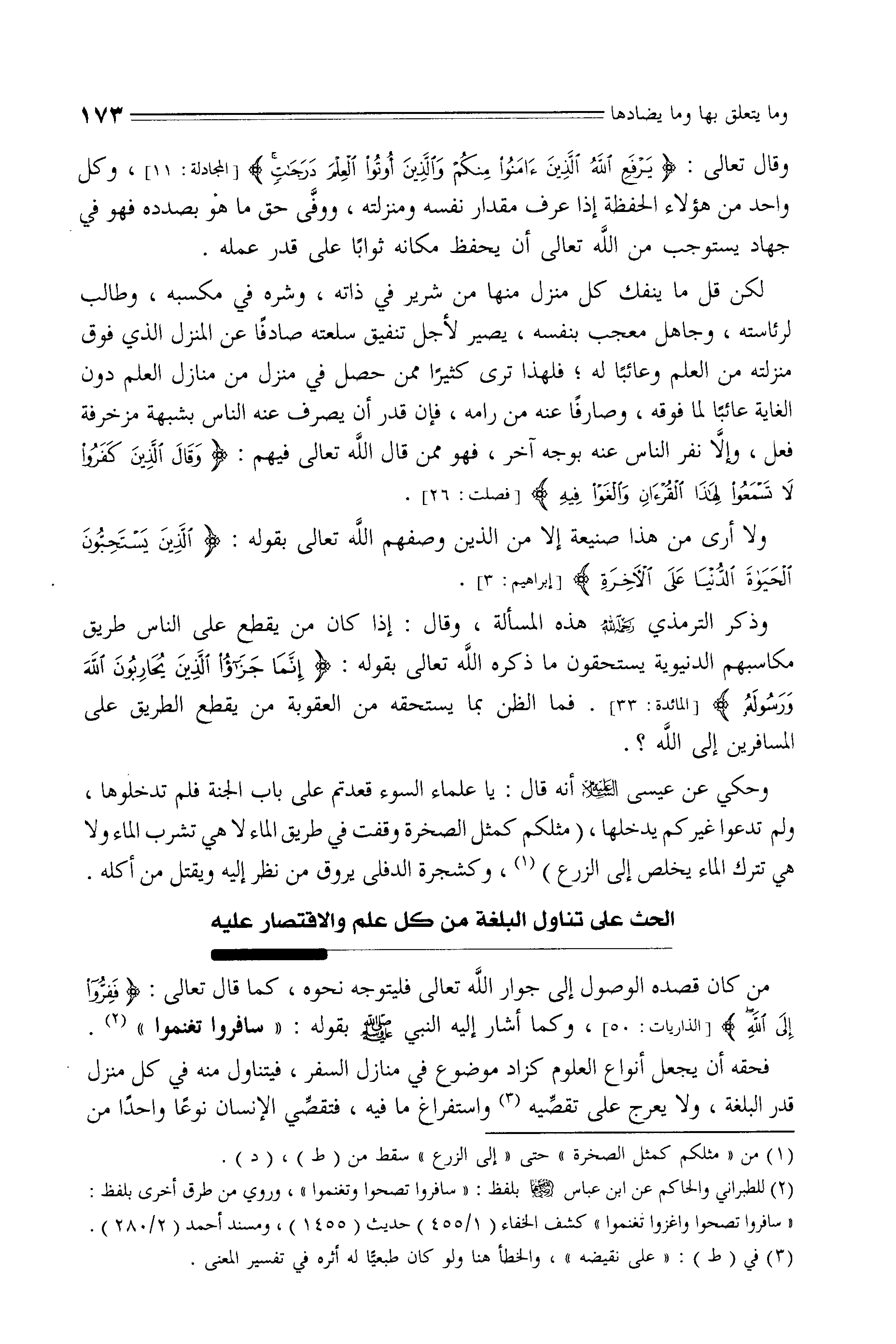 الحث على تناول البلغة من كل علم والاقتصار عليه
