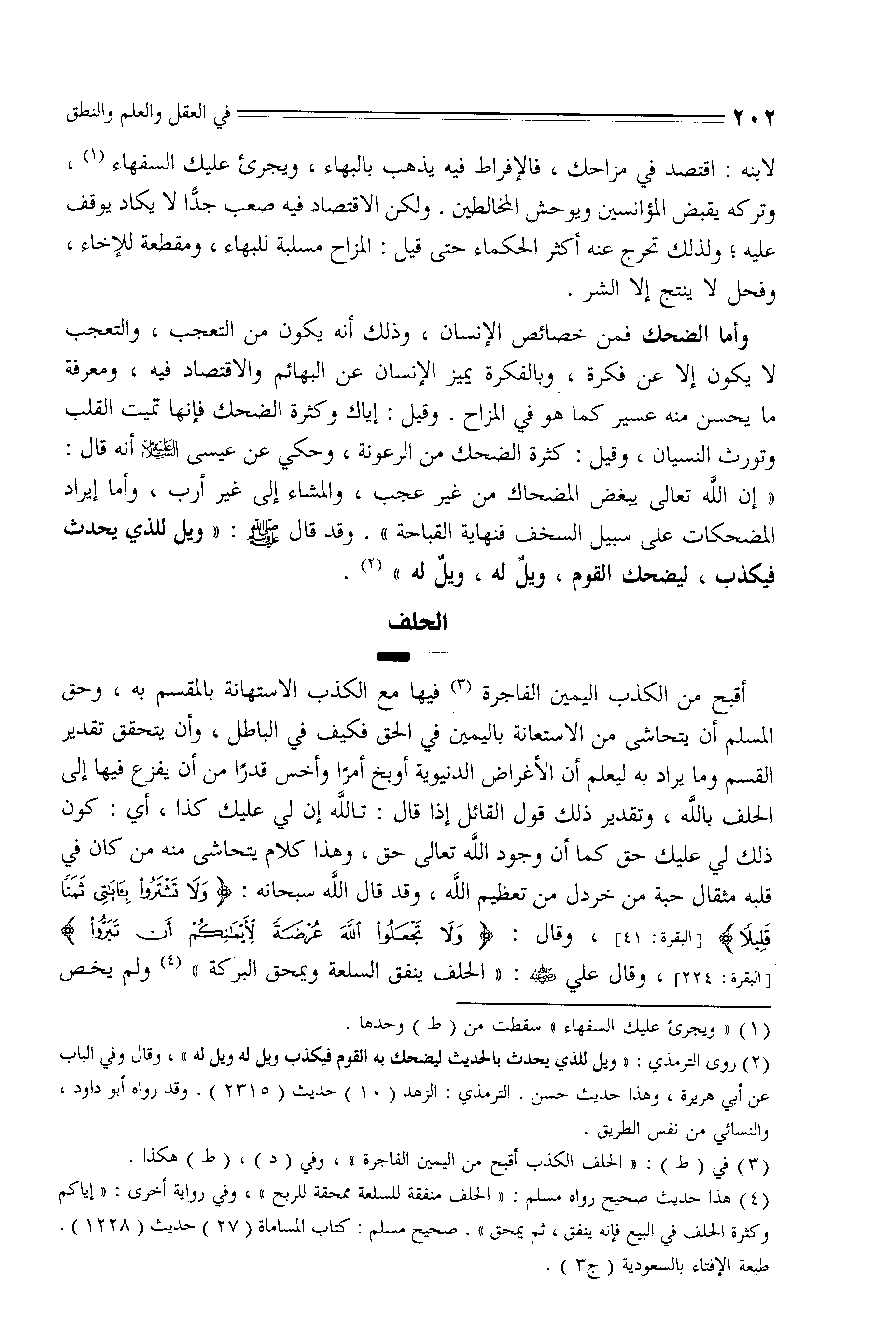وأما إيراد المضحكات على سبيل السخف فنهاية القباحة ". وقد قال - صلى الله عليه وسلم -: " ويل للذي يحدث فيكذب، ليضحك القوم، ويلٌ له، ويلٌ له ".