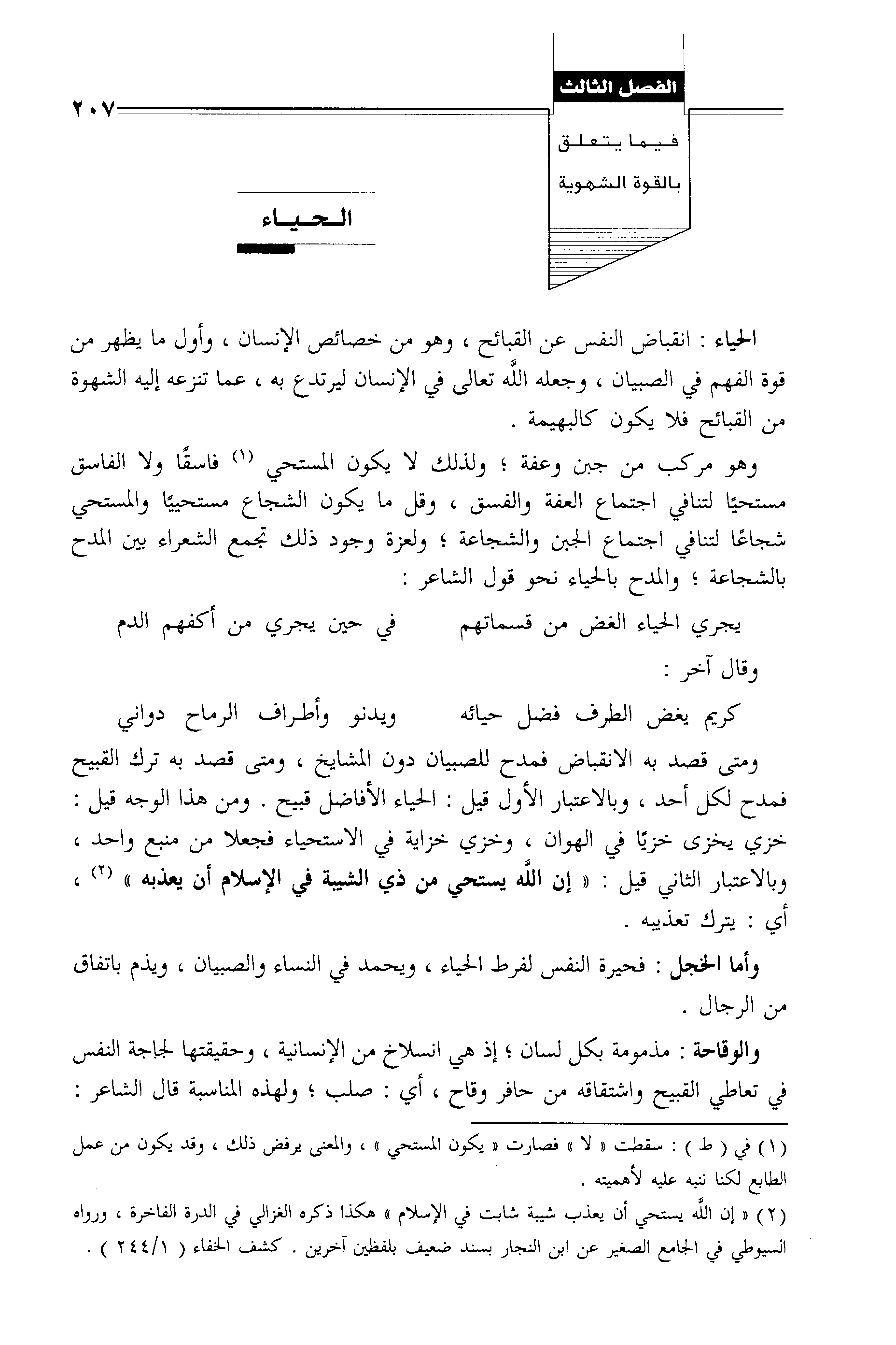 ومتى قصد به الانقباض فمدح للصبيان دون المشايخ، ومتى قصد به ترك القبيح فمدح لكل أحد، وبالاعتبار الأول قيل: الحياء الأفاضل قبيح.