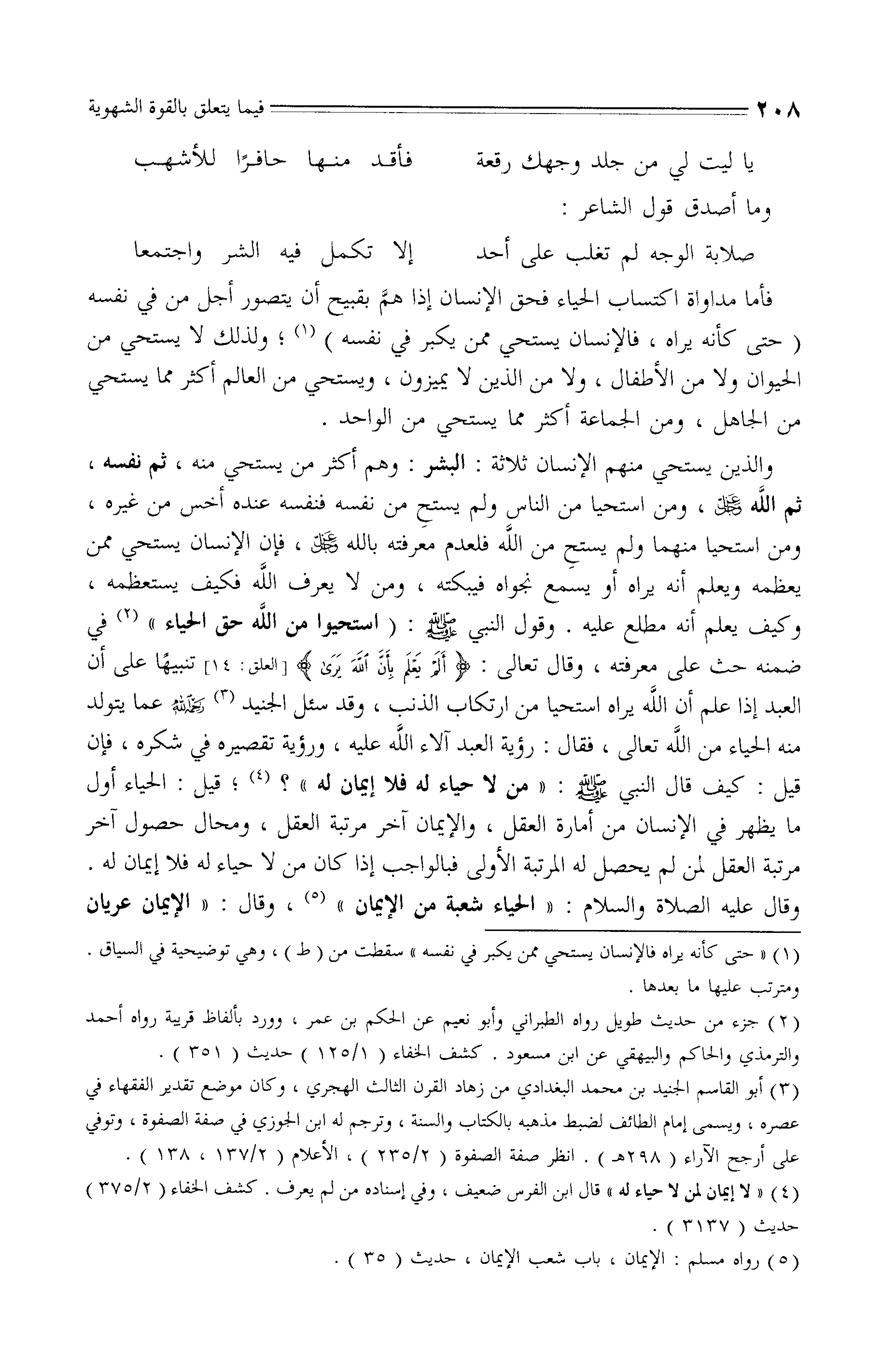 وقول النبي - صلى الله عليه وسلم -: (استحيوا من اللَّه حق الحياء " في