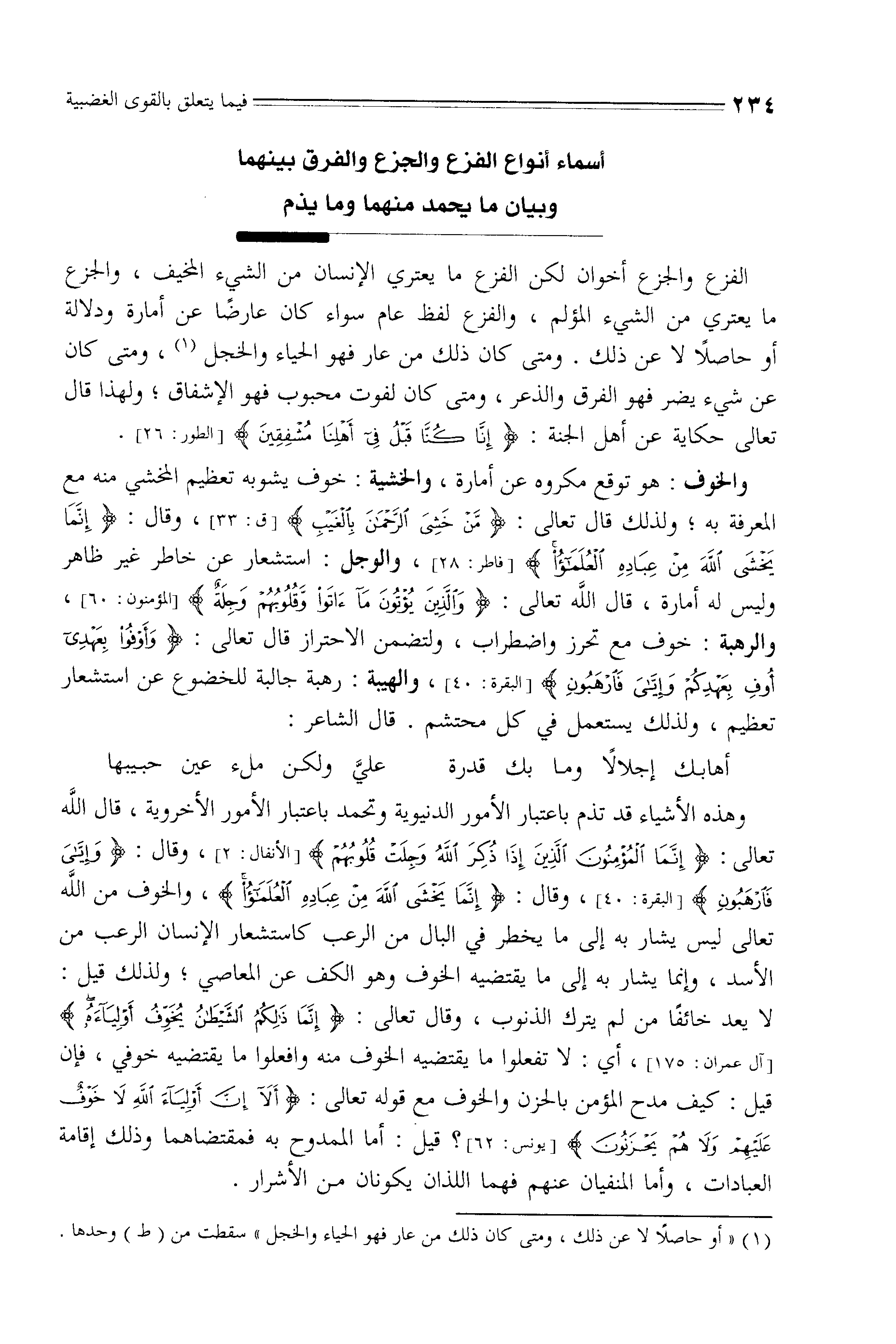 أسماء أنواع الفزخ والجزع والفرق بينهما وبيان ما يحمد منهما وما يذم