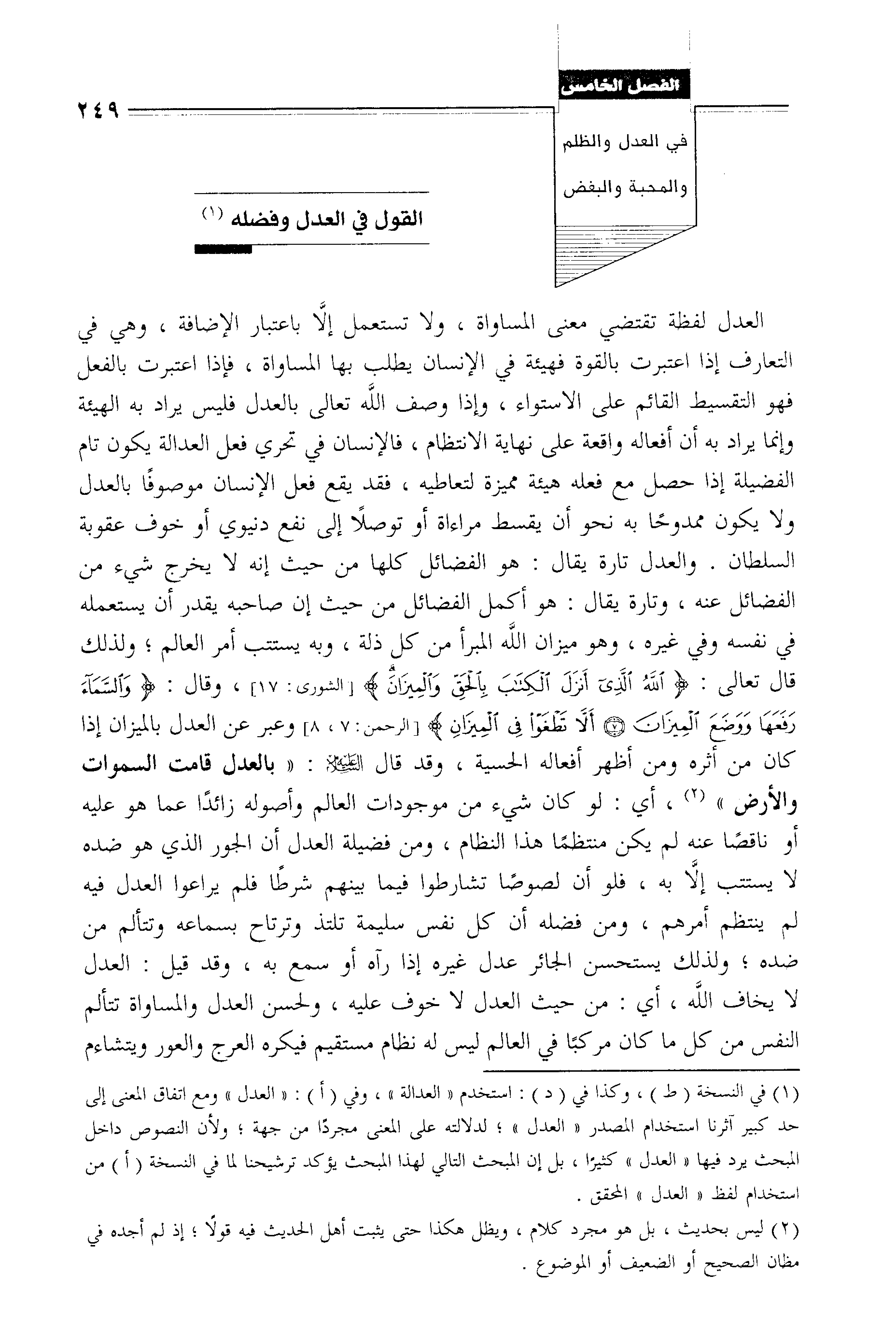 القول في العدل وفضله