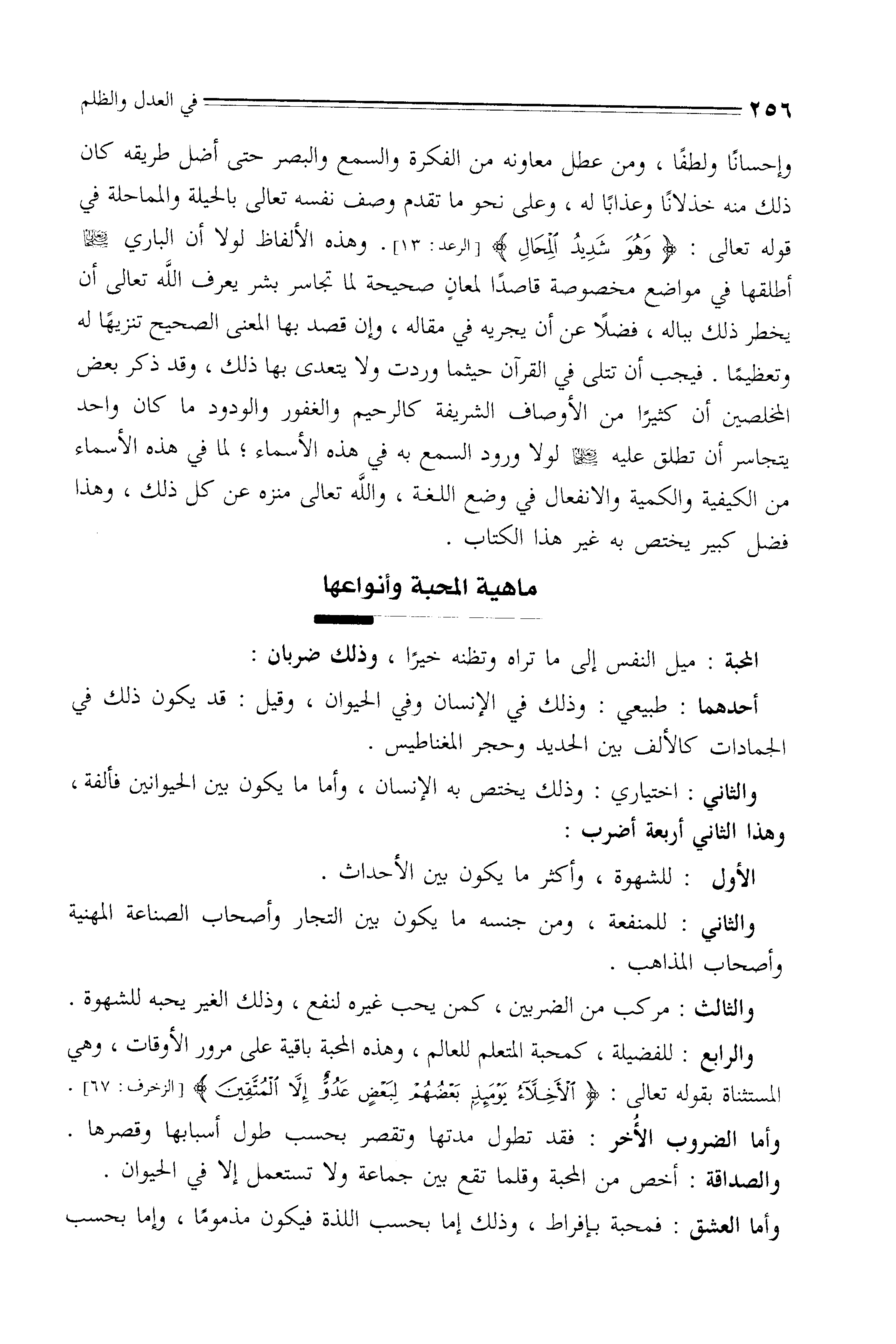 والرابع: للفضيلة، كمحبة المتعلم للعالم، وهذه المحبة باقية على مرور الأوقات، وهي المستثناة باتوله تعالى: (الْأَخِلَّاءُ يَوْمَئِذٍ بَعْضُهُمْ لِبَعْضٍ عَدُوٌّ إِلَّا الْمُتَّقِينَ (67) .