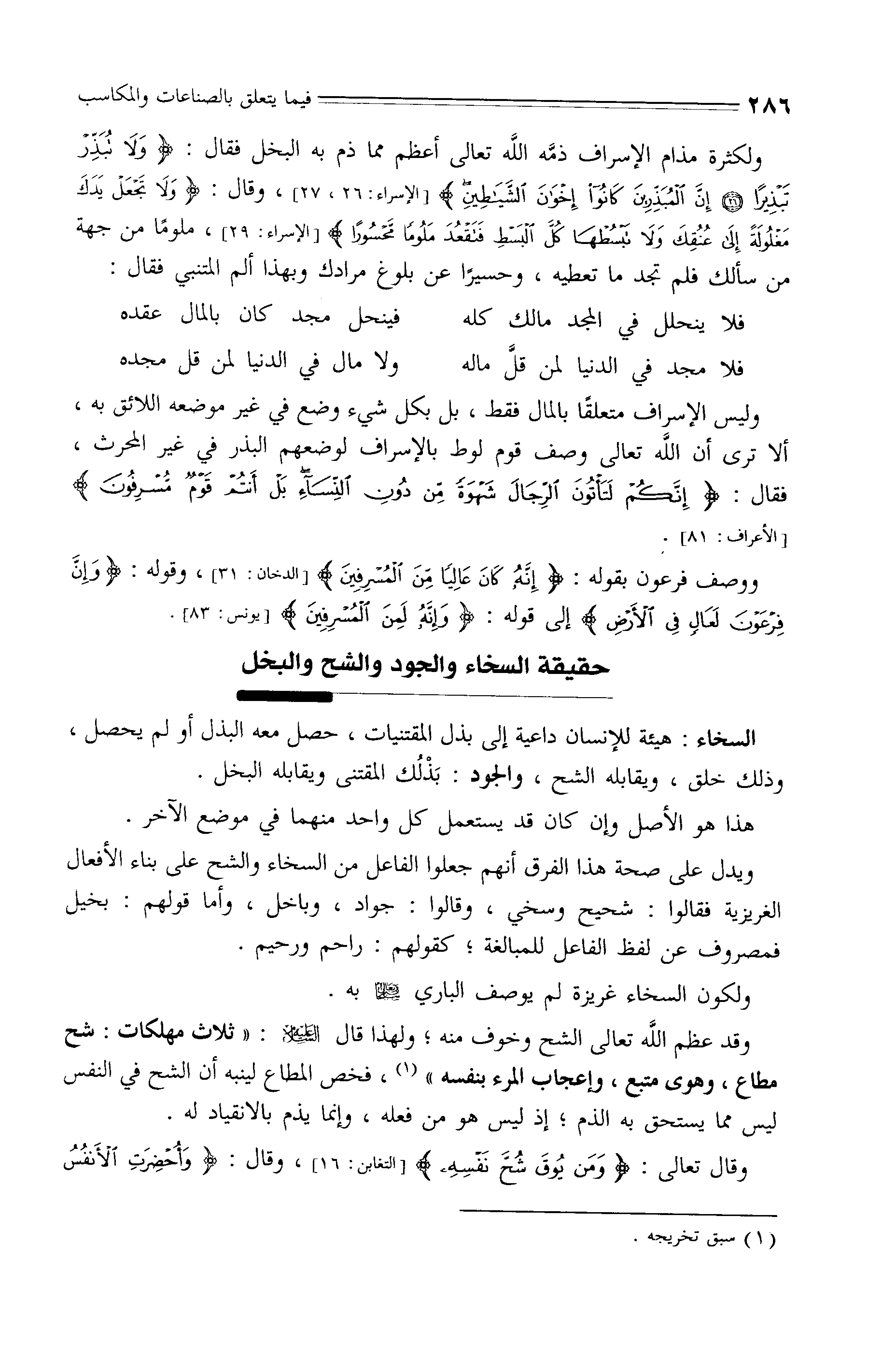 وقال تعالى: (وَمَنْ يُوقَ شُحَّ نَفْسِهِ فَأُولَئِكَ هُمُ الْمُفْلِحُونَ (9)