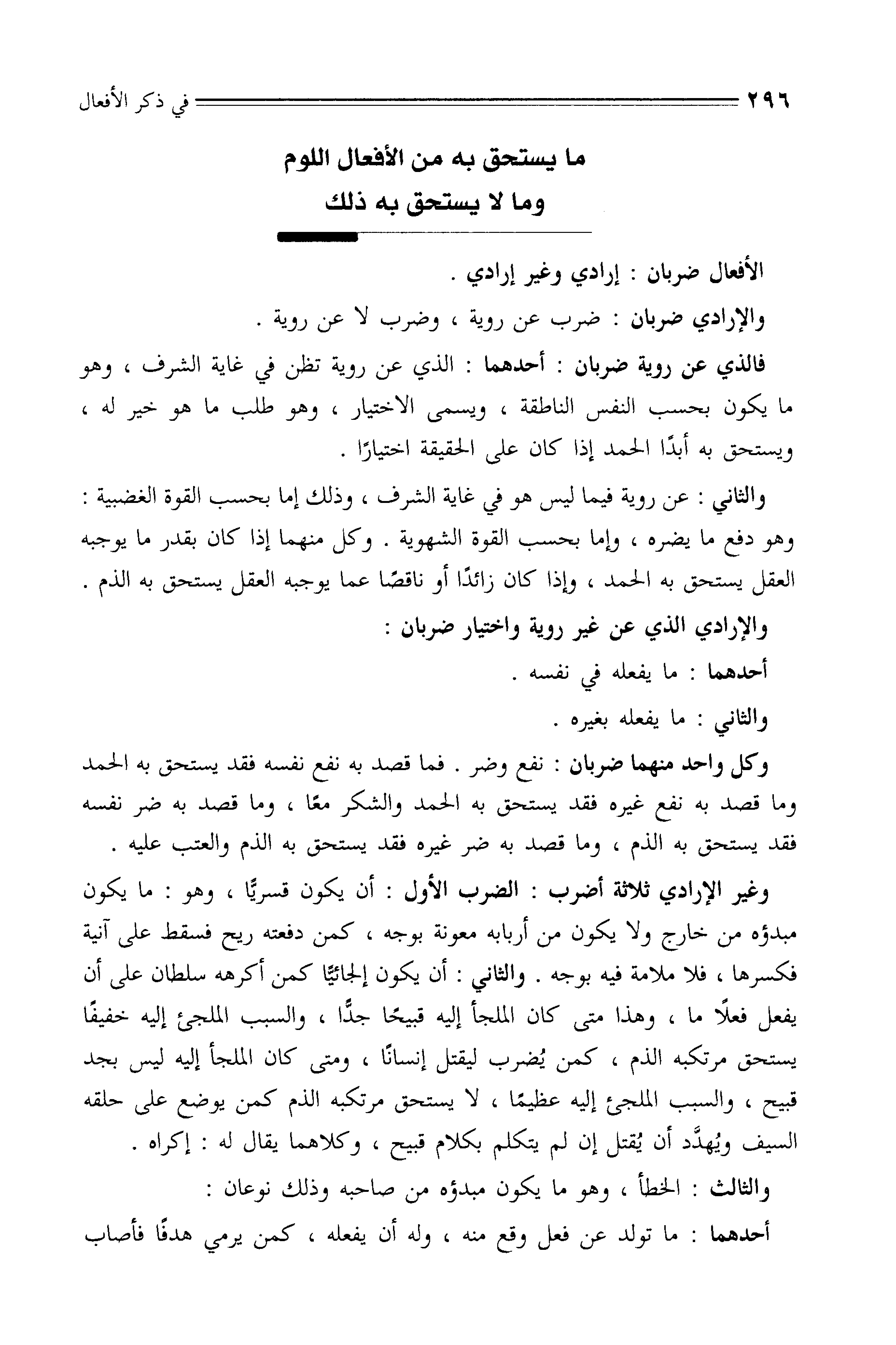 ما يستحق به من الأفعال اللوم وما لا يستحق به ذلك