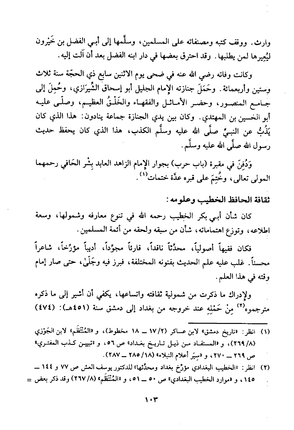 (¬٢) انظر: "الخطيب البغدادي مؤرِّخ بغداد ومحدِّثها" للدكتور يوسف العش ص ٧٧ و ١٤٤ - ١٤٥، و"موارد الخطيب البغدادي" ص ٥٠ - ٥١، و"المُنْتَظَم" (٨/ ٢٦٧) وقد ذكر بعض =
