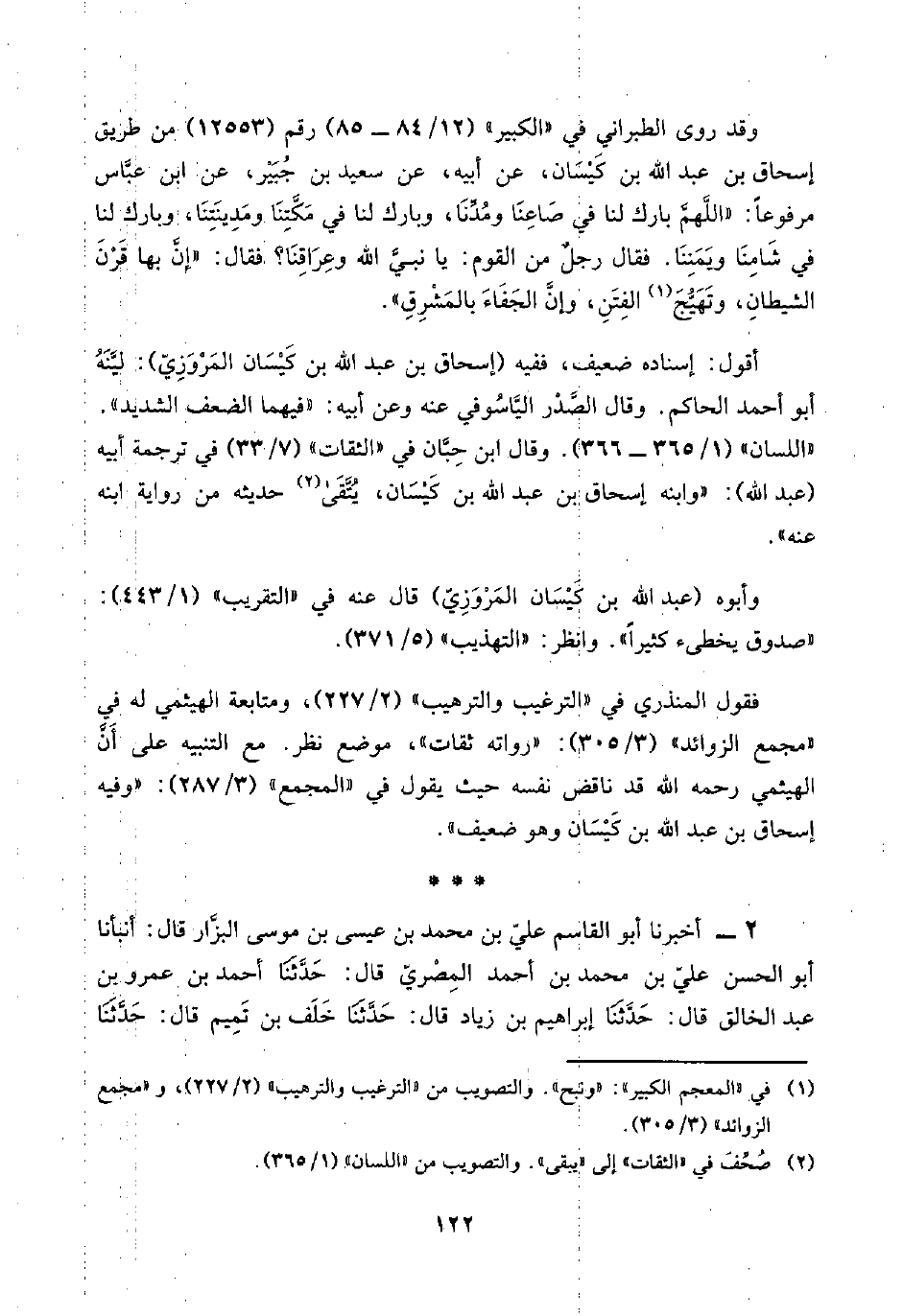 فقول المنذري في "الترغيب والترهيب" (٢/ ٢٢٧)، ومتابعة الهيثمي له في "مجمع الزوائد" (٣/ ٣٠٥): "رواته ثقات"، موضع نظر. مع التنبيه على أنَّ الهيثمي رحمه اللَّه قد ناقض نفسه حيث يقول في "المجمع" (٣/ ٢٨٧): "وفيه إسحاق بن عبد اللَّه بن كَيْسَان وهو ضعيف".
