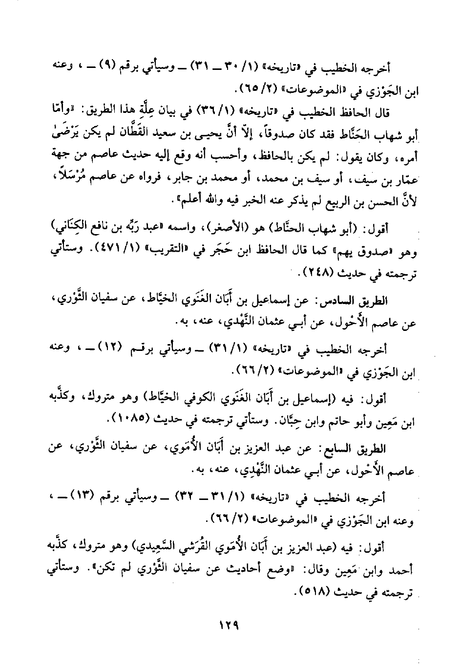 قال الحافظ الخطيب في "تاريخه" (١/ ٣٦) في بيان عِلَّةِ هذا الطريق: "وأمّا أبو شهاب الحَنَّاط فقد كان صدوقًا، إلّا أنَّ يحيى بن سعيد القَطَّان لم يكن يَرْضَى أمره، وكان يقول: لم يكن بالحافظ، وأحسب أنه وقع إليه حديث عاصم من جهة عمّار بن سيف، أو سيف بن محمد، أو محمد بن جابر، فرواه عن عاصم مُرْسَلًا، لأنَّ الحسن بن الربيع لم يذكر عنه الخبر فيه واللَّه أعلم".