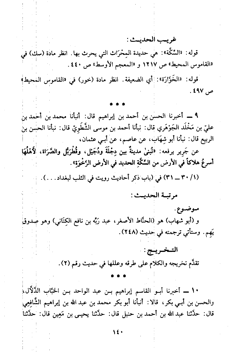 (١/ ٣٠ - ٣١) في (باب ذكر أحاديث رويت في الثلب لبغداد. . .).