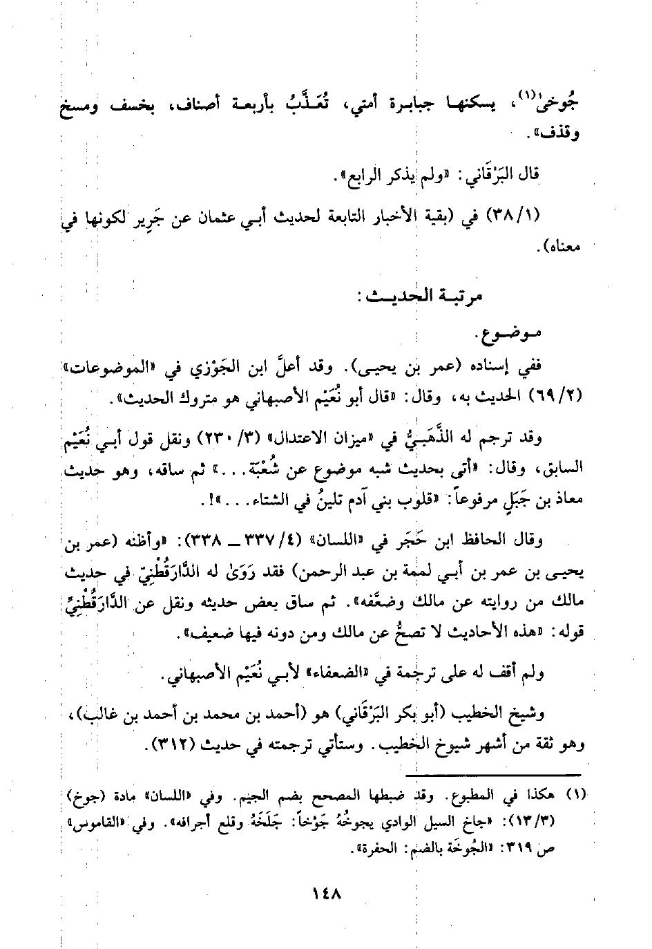 (¬١) هكذا في المطبوع. وقد ضبطها المصحح بضم الجيم. وفي "اللسان" مادة (جوخ) (٣/ ١٣): "جاخ السيل الوادي يجوخُهُ جَوخًا: جَلَخَهُ وقلع أجرافه". وفي "القاموس" ص ٣١٩: "الجُوخَة بالضم: الحفرة".