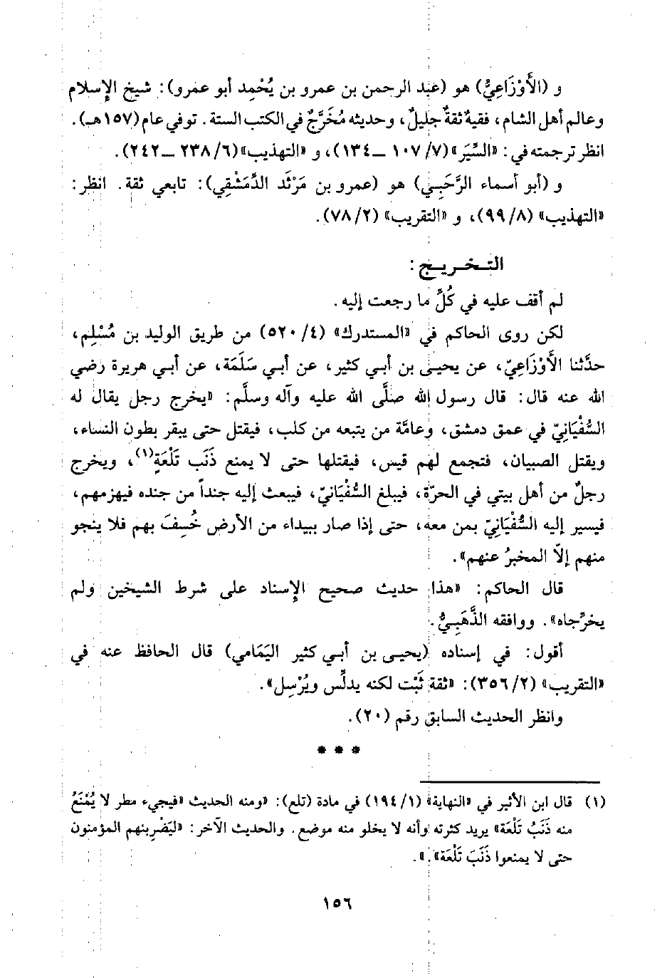 و (الأَوْزَاعِيُّ) هو (عبد الرحمن بن عمرو بن يُحْمِد أبو عمرو): شيخ الإِسلام وعالم أهل الشام، فقيهٌ ثقةٌ جليلٌ، وحديثه مُخَرَّجٌ في الكتب الستة. توفي عام (١٥٧ هـ). انظر ترجمته في: "السِّيَر" (٧/ ١٠٧ - ١٣٤)، و"التهذيب" (٦/ ٢٣٨ - ٢٤٢).