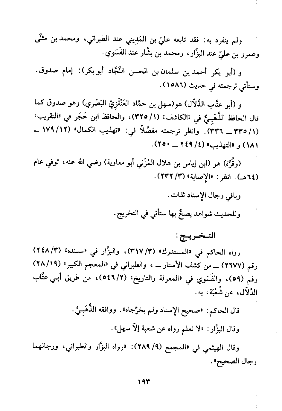وقال البزَّار: "لا نعلم رواه عن شعبة إلّا سهل".