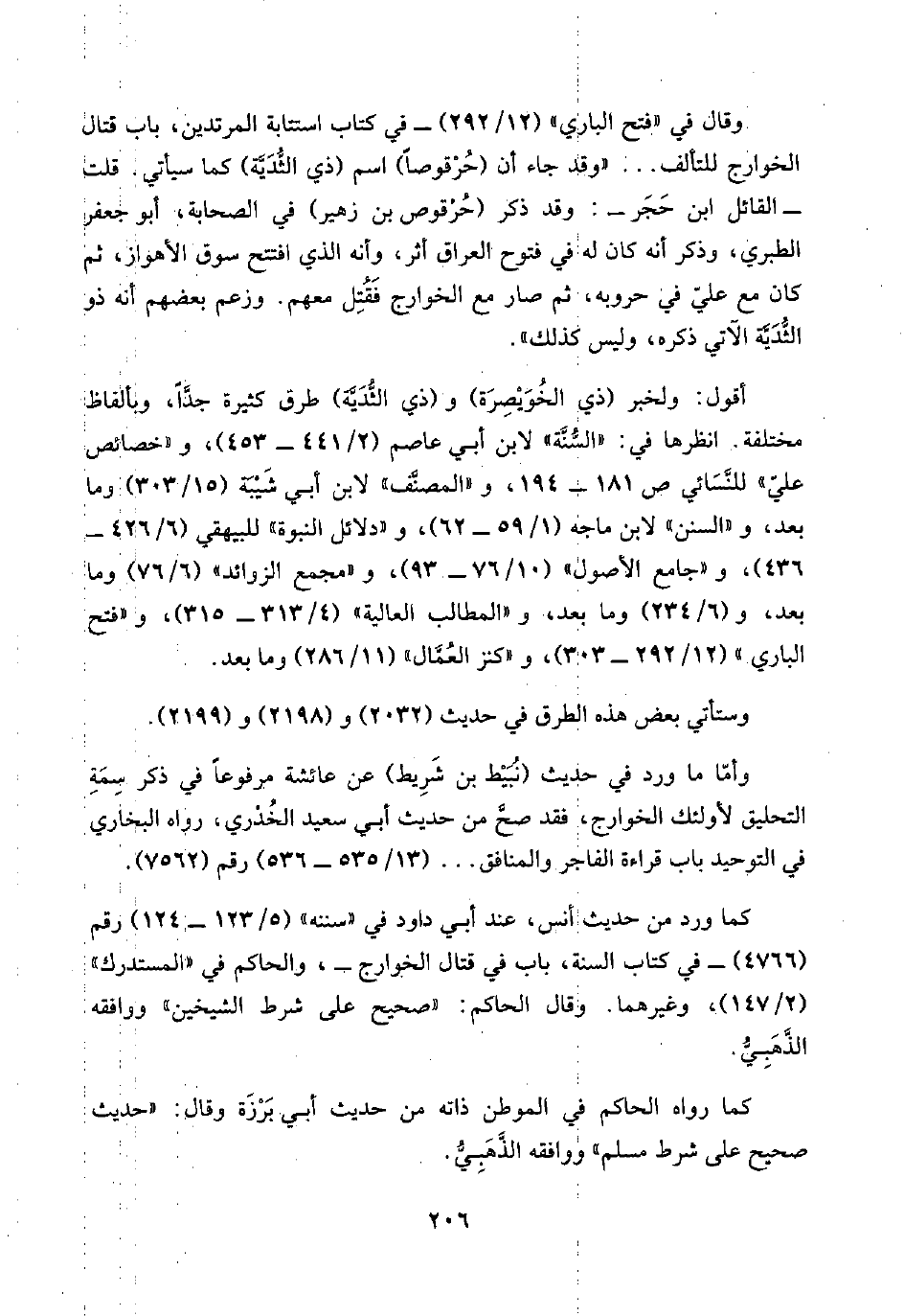 أقول: ولخبر (ذي الخُوَيصِرَة) و (ذي الثُّدَيَّة) طرق كثيرة جدًّا، وبألفاظ مختلفة. انظرها في: "السُّنَّة" لابن أبي عاصم (٢/ ٤٤١ - ٤٥٣)، و"خصائص عليّ" للنَّسَائي ص ١٨١ - ١٩٤، و"المصنَّف" لابن أبي شَيْبَة (١٥/ ٣٠٣) وما بعد، و"السنن" لابن ماجه (١/ ٥٩ - ٦٢)، و"دلائل النبوة" للبيهقي (٦/ ٤٢٦ - ٤٣٦)، و"جامع الأصول" (١٠/ ٧٦ - ٩٣)، و"مجمع الزوائد" (٦/ ٧٦) وما بعد، و (٦/ ٢٣٤) وما بعد، و"المطالب العالية" (٤/ ٣١٣ - ٣١٥)، و"فتح الباري" (١٢/ ٢٩٢ - ٣٠٢)، و"كنز العُمَّال" (١١/ ٢٨٦) وما بعد.