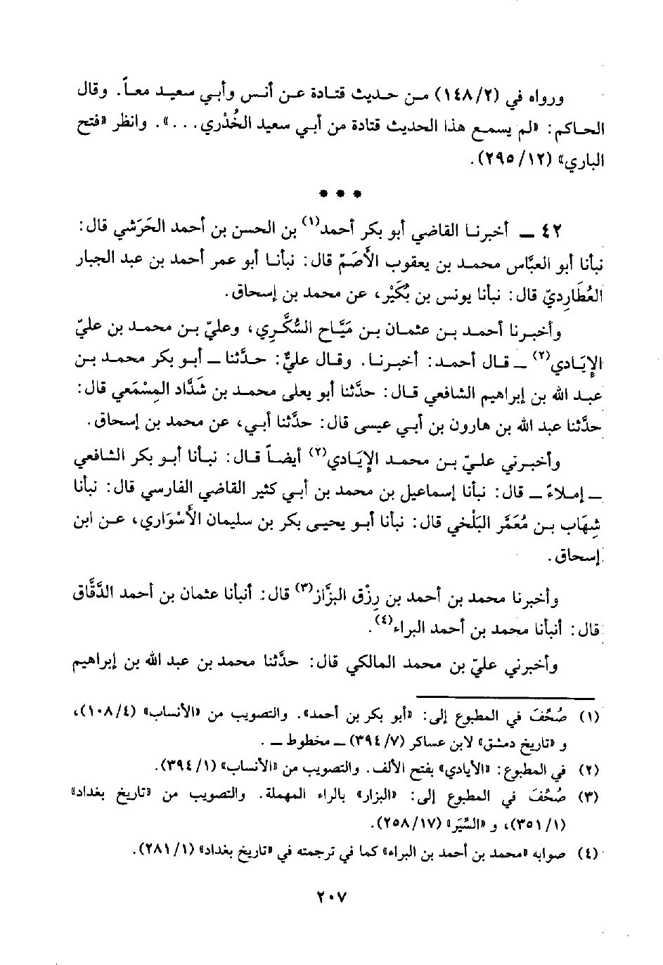 وأخبرنا محمد بن أحمد بن رِزْق البزَّاز (¬٣) قال: أنبأنا عثمان بن أحمد الدَّقَّاق قال: أنبأنا محمد بن أحمد البراء (¬٤).