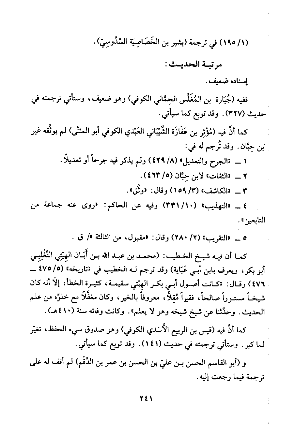 كما أنَّ فيه (مُؤْثِر بن عَفَازَة الشَّيْبَاني العَبْدي الكوفي أبو المثنَّى) لم يوثِّقه غير ابن حِبَّان. وقد تُرجم له في: