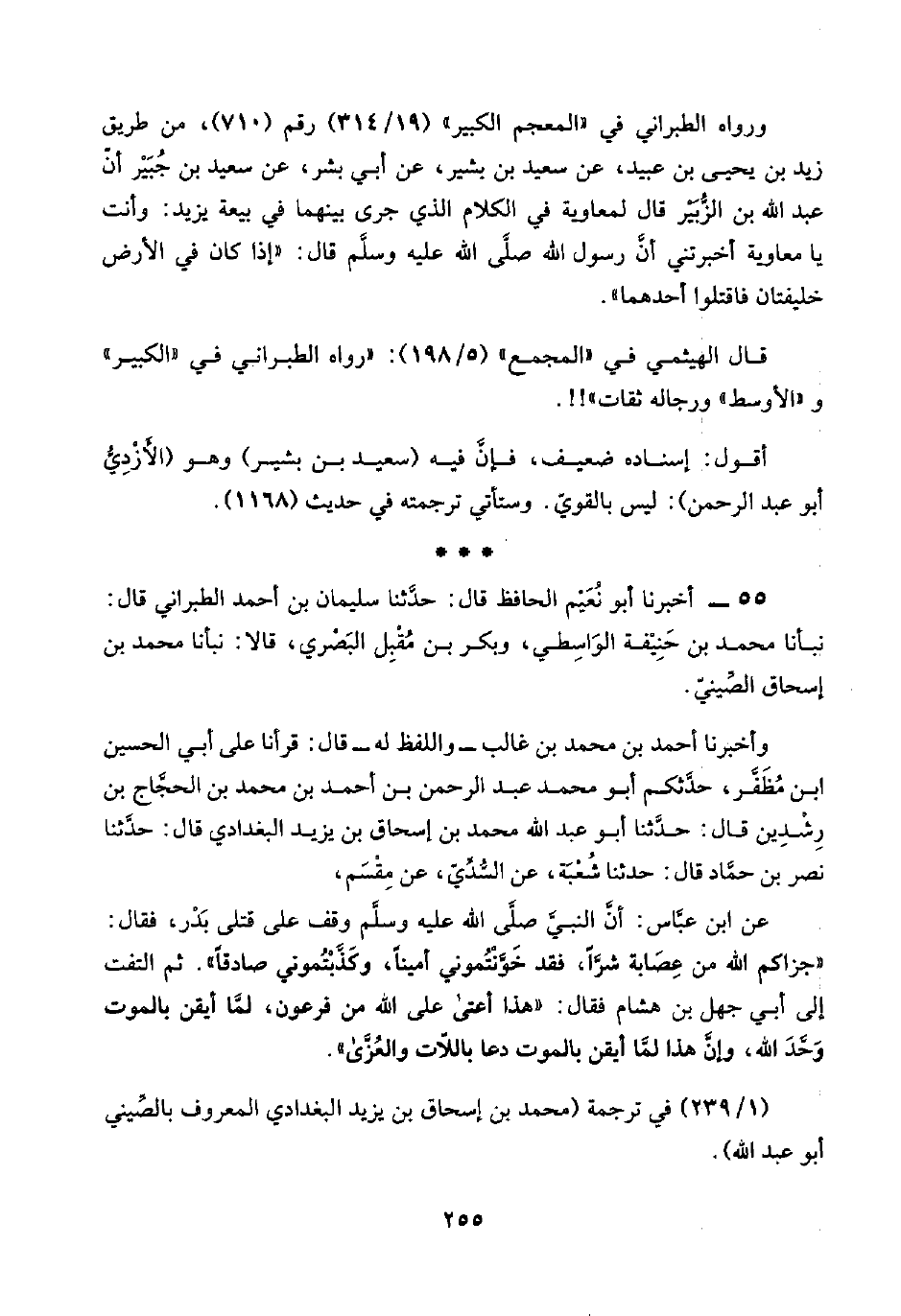 ٥٥ - أخبرنا أبو نُعَيْم الحافظ قال: حدَّثنا سليمان بن أحمد الطبراني قال: نبأنا محمد بن حَنِيْفة الوَاسِطي، وبكر بن مُقْبِل البَصْري، قالا: نبأنا محمد بن إسحاق الصِّينيّ.