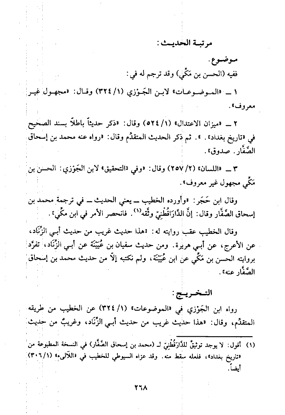٣ - "اللسان" (٢/ ٢٥٧) وقال: "وفي التحقيق" لابن الجَوْزي: الحسن بن مَكِّي مجهول غير معروف".