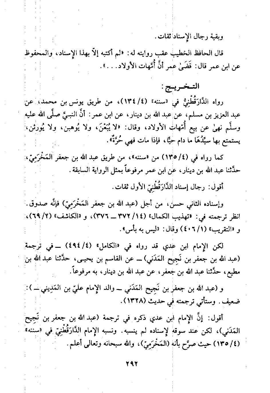 قال الحافظ الخطيب عقب روايته له: "لم أكتبه إلّا بهذا الإِسناد، والمحفوظ عن ابن عمر قال: قَضَى عمر أنَّ أُمَّهات الأولاد. . . ".