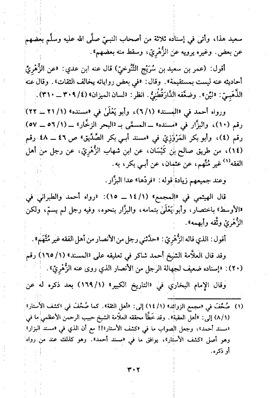 وقد قال العلَّامة الشيخ أحمد شاكر في تعليقه على "المسند" (١/ ١٦٥) رقم (٢٠): "إسناده ضعيف لجهالة الرجل من الأنصار الذي روى عنه الزُّهْرِيّ".