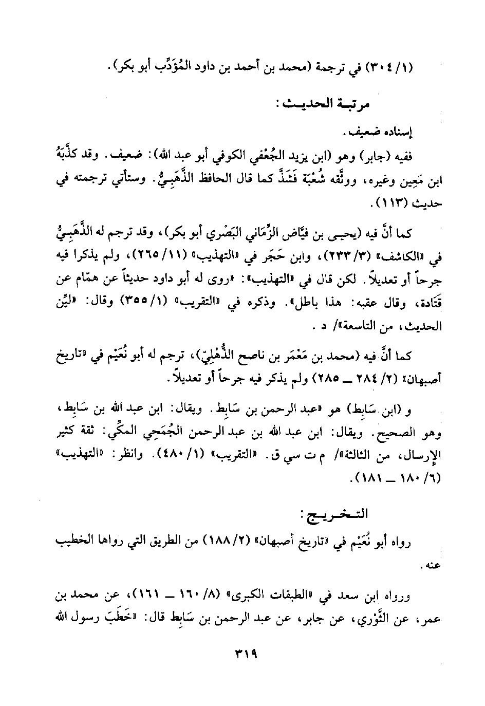 (١/ ٣٠٤) في ترجمة (محمد بن أحمد بن داود المؤَدِّب أبو بكر).