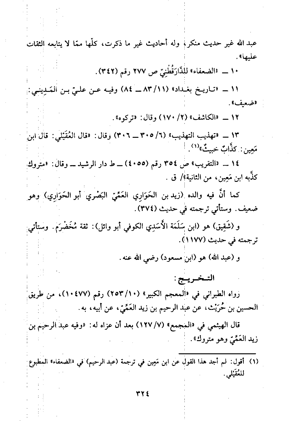 (¬١) أقول: لم أجد هذا القول عن ابن مَعِين في ترجمة (عبد الرحيم) في "الضعفاء" المطبوع للعُقَيْلِي.
