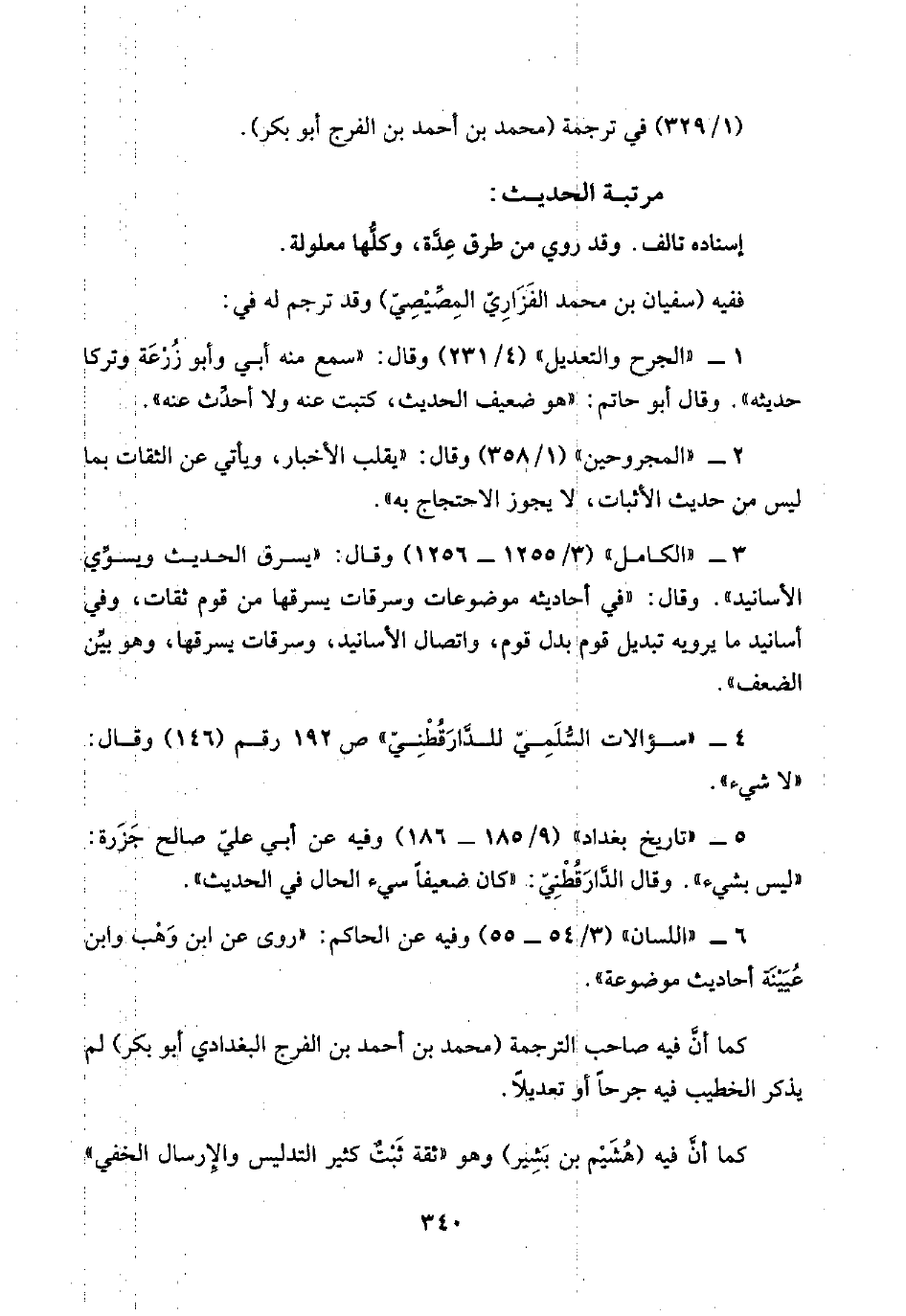 (١/ ٣٢٩) في ترجمة (محمد بن أحمد بن الفرج أبو بكر).
