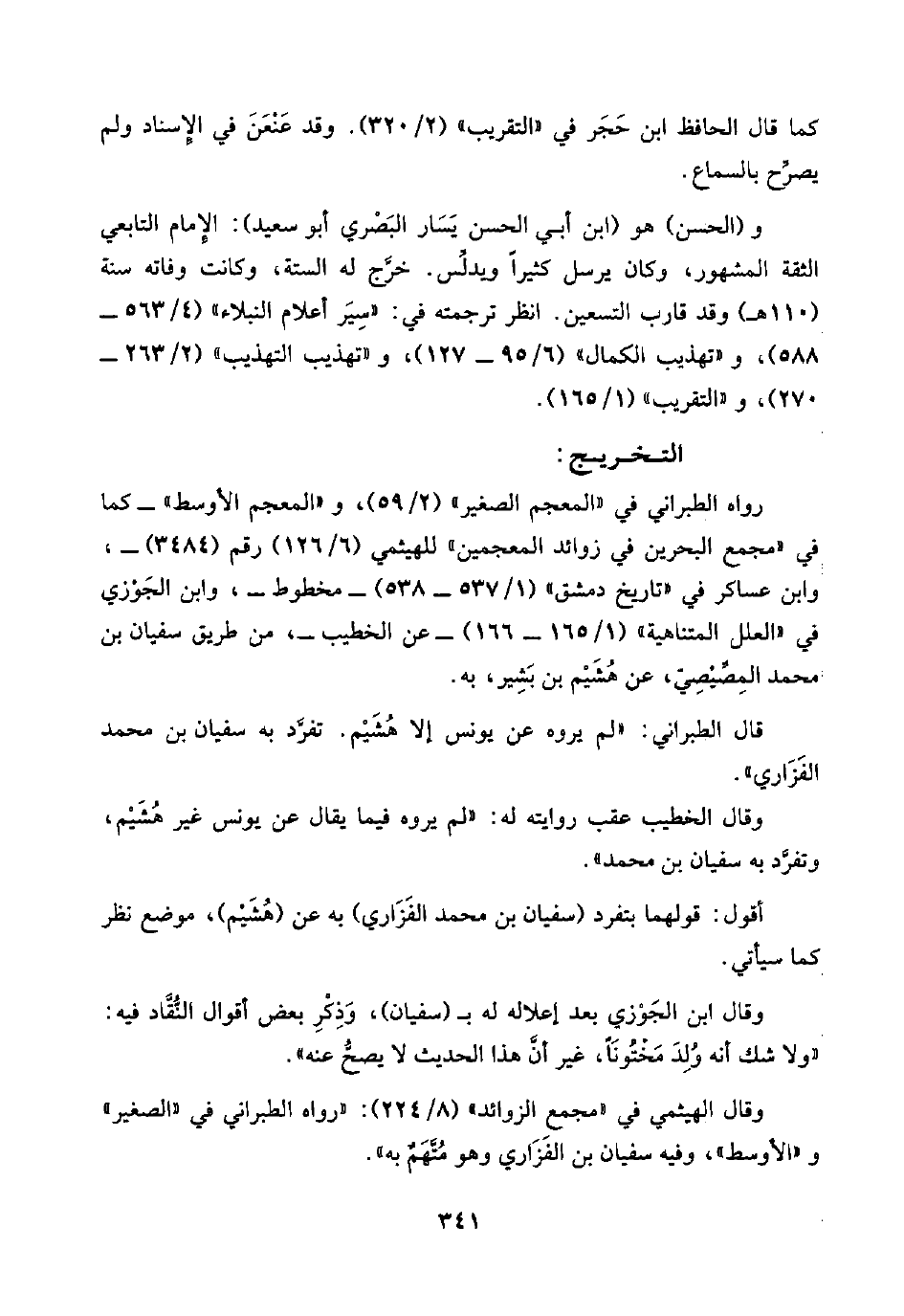 قال الطبراني: "لم يروه عن يونس إلَّا هُشَيْم. تفرَّد به سفيان بن محمد الفَزَاري".