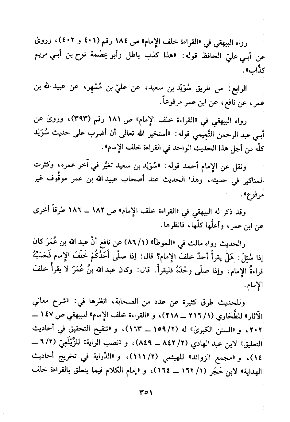 رواه البيهقي في "القراءة خلف الإِمام" ص ١٨١ رقم (٣٩٣)، وروى عن أبي عبد الرحمن التَّمِيمي قوله: "أستخير اللَّه تعالى أن أضرب على حديث سُوَيْد كلّه من أجل هذا الحديث الواحد في القراءة خلف الإِمام".