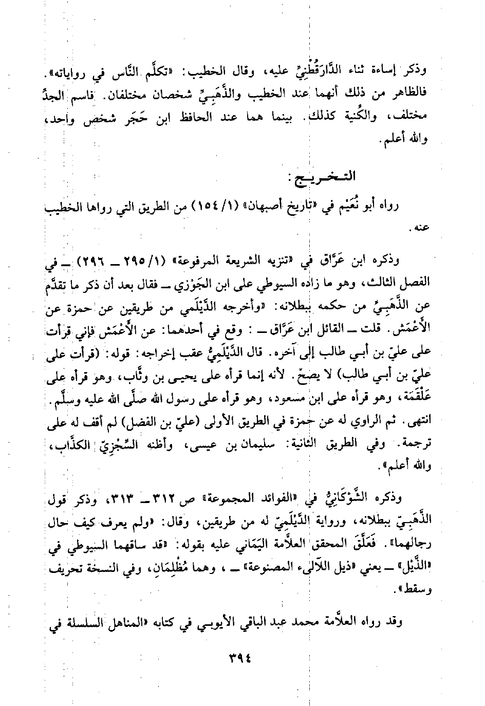 وذكر إساءة ثناء الدَّارَقُطْنِيِّ عليه، وقال الخطيب: تكلَّم النَّاس في رواياته". فالظاهر من ذلك أنهما عند الخطيب والذَّهَبِيِّ شخصان مختلفان. فاسم الجدِّ مختلف، والكُنية كذلك. بينما هما عند الحافظ ابن حَجَر شخص واحد، واللَّه أعلم.