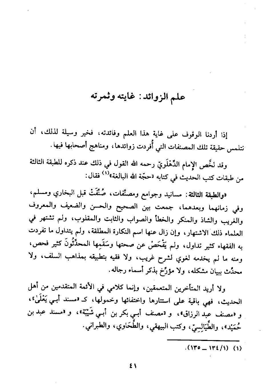ولا أريد المتأخرين المتعمقين، وإنما كلامي في الأئمة المتقدمين من أهل الحديث، فهي باقية على استتارها واختفائها وخمولها، كـ "مسند أبي يَعْلَى"، و"مصنف عبد الرزاق"، و"مصنف أبي بكر بن أبي شَيْبَة"، و"مسند عبد بن حُمَيْد"، والطَّيَالِسِيّ، وكتب البيهقي، والطَّحَاوي، والطبراني.
