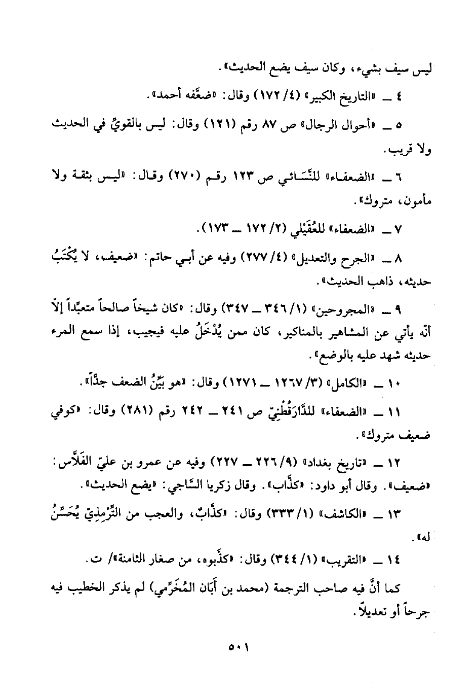 ليس سيف بشيء، وكان سيف يضع الحديث".