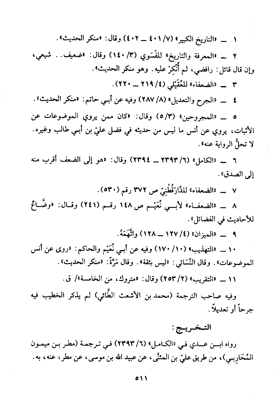 ٧ - "الضعفاء" للدَّارَقُطْنِيّ ص ٣٧٢ رقم (٥٣٠).