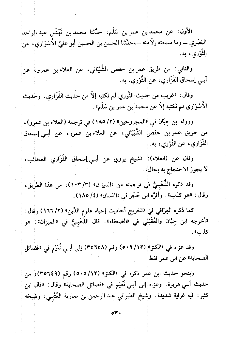 ورواه ابن حِبَّان في "المجروحين" (٢/ ١٨٥) في ترجمة (العلاء بن عمرو)، من طريق عمر بن حفص الشَّيْبَاني، عن العلاء بن عمرو، عن أبي إسحاق الفَزَاري، عن الثَّوْري، به.