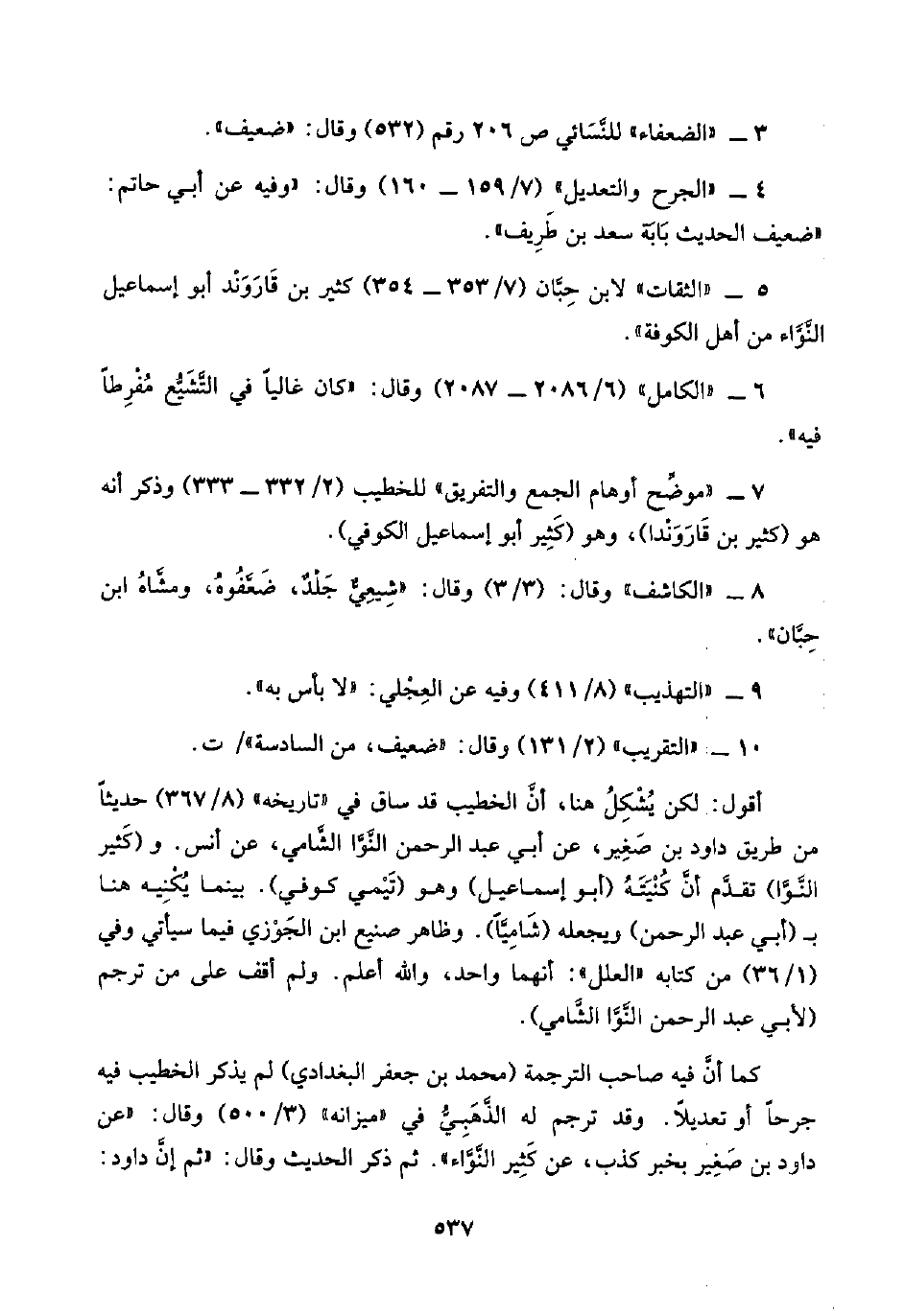 ٣ - "الضعفاء" للنَّسَائي ص ٢٠٦ رقم (٥٣٢) وقال: "ضعيف".