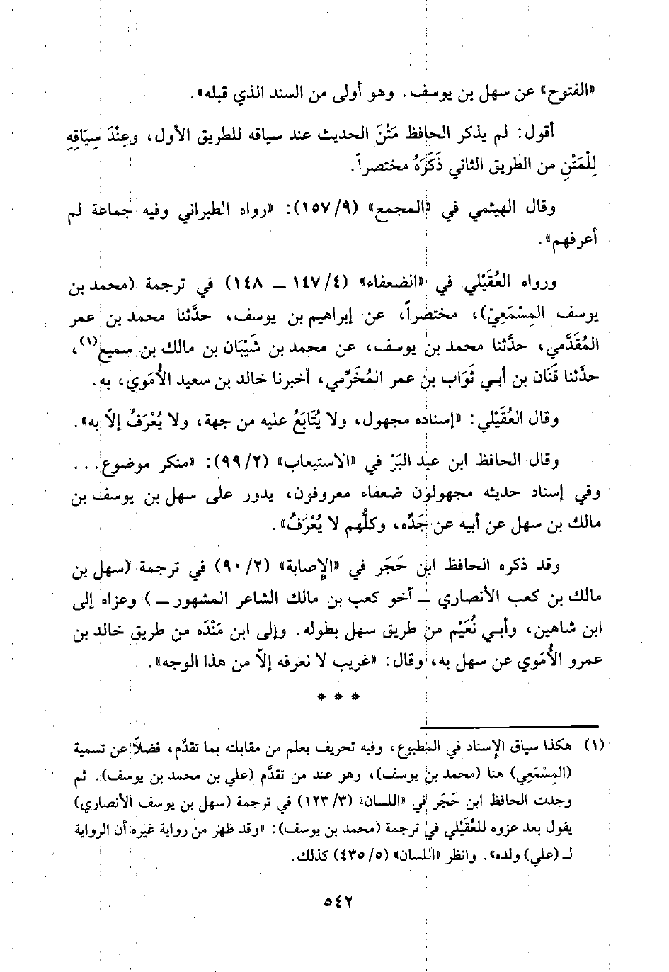 (¬١) هكذا سياق الإِسناد في المطبوع، وفيه تحريف يعلم من مقابلته بما تقدَّم، فضلًا عن تسمية (المِسْمَعِي) هنا (محمد بن يوسف)، وهو عند من تقدَّم (علي بن محمد بن يوسف). ثم وجدت الحافظ ابن حَجَر في "اللسان" (٣/ ١٢٣) في ترجمة (سهل بن يوسف الأنصاري) يقول بعد عزوه للعُقَيْلي في ترجمة (محمد بن يوسف): "وقد ظهر من رواية غيره أن الرواية لـ (علي) ولده". وانظر "اللسان" (٥/ ٤٣٥) كذلك.