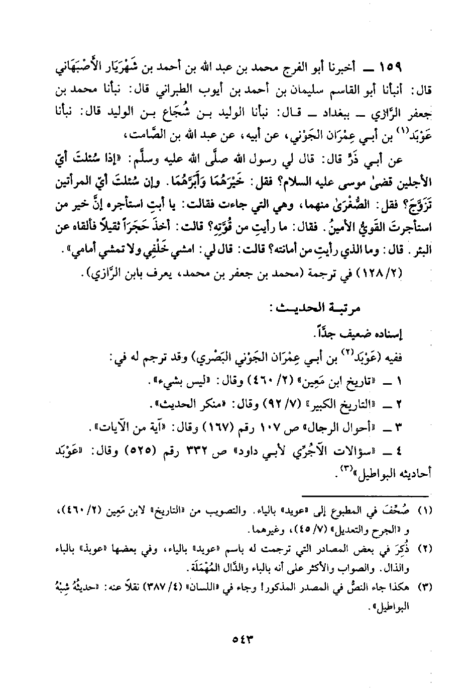 (¬٢) ذُكِرَ في بعض المصادر التي ترجمت له باسم "عويد" بالياء، وفي بعضها "عوبذ" بالباء والذال. والصواب والأكثر على أنه بالباء والدَّال المُهْمَلَة.