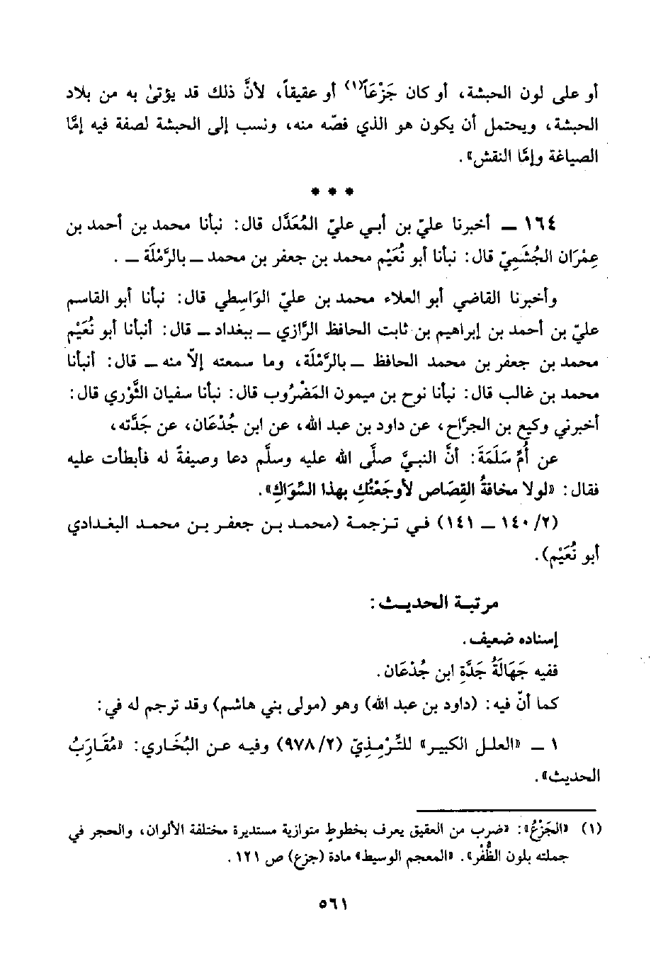 ١٦٤ - أخبرنا عليّ بن أبي عليّ المُعَدَّل قال: نبأنا محمد بن أحمد بن عِمْرَان الجُشَمِيّ قال: نبأنا أبو نُعَيْم محمد بن جعفر بن محمد -بالرَّمْلَة-.