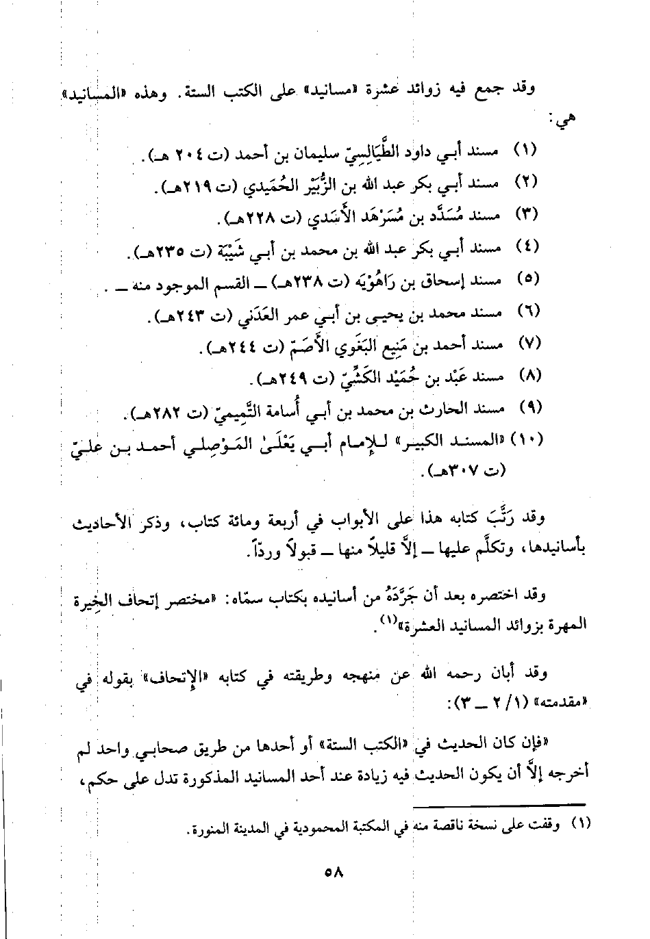 وقد جمع فيه زوائد عشرة "مسانيد" على الكتب الستة. وهذه "المسانيد" هي: