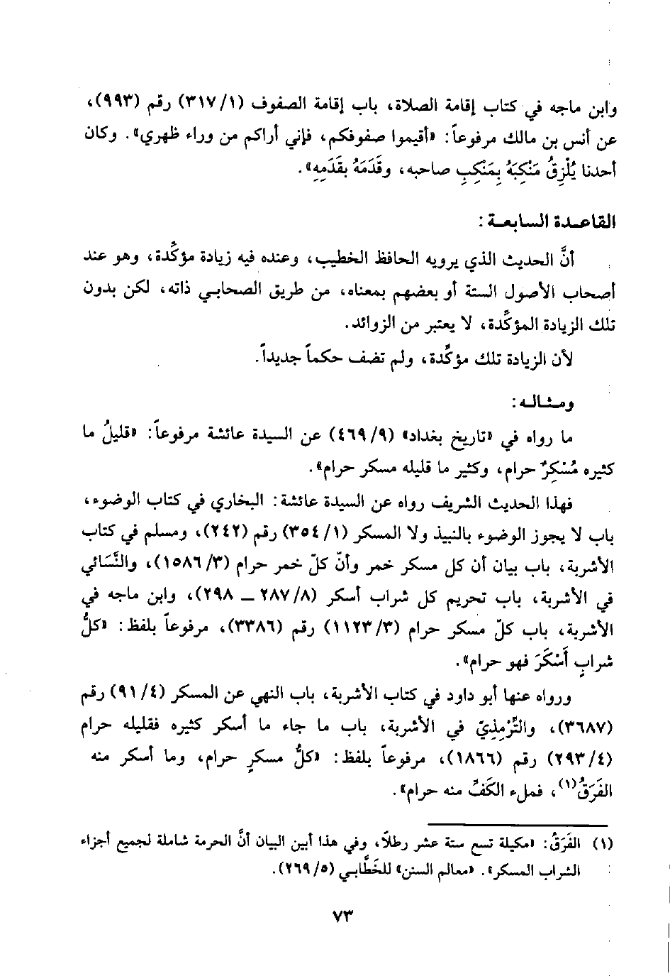 (¬١) الفَرَقُ: "مكيلة تسع ستة عشر رطلًا، وفي هذا أبين البيان أنَّ الحرمة شاملة لجميع أجزاء الشراب المسكر". "معالم السنن" للخَطَّابي (٥/ ٢٦٩).