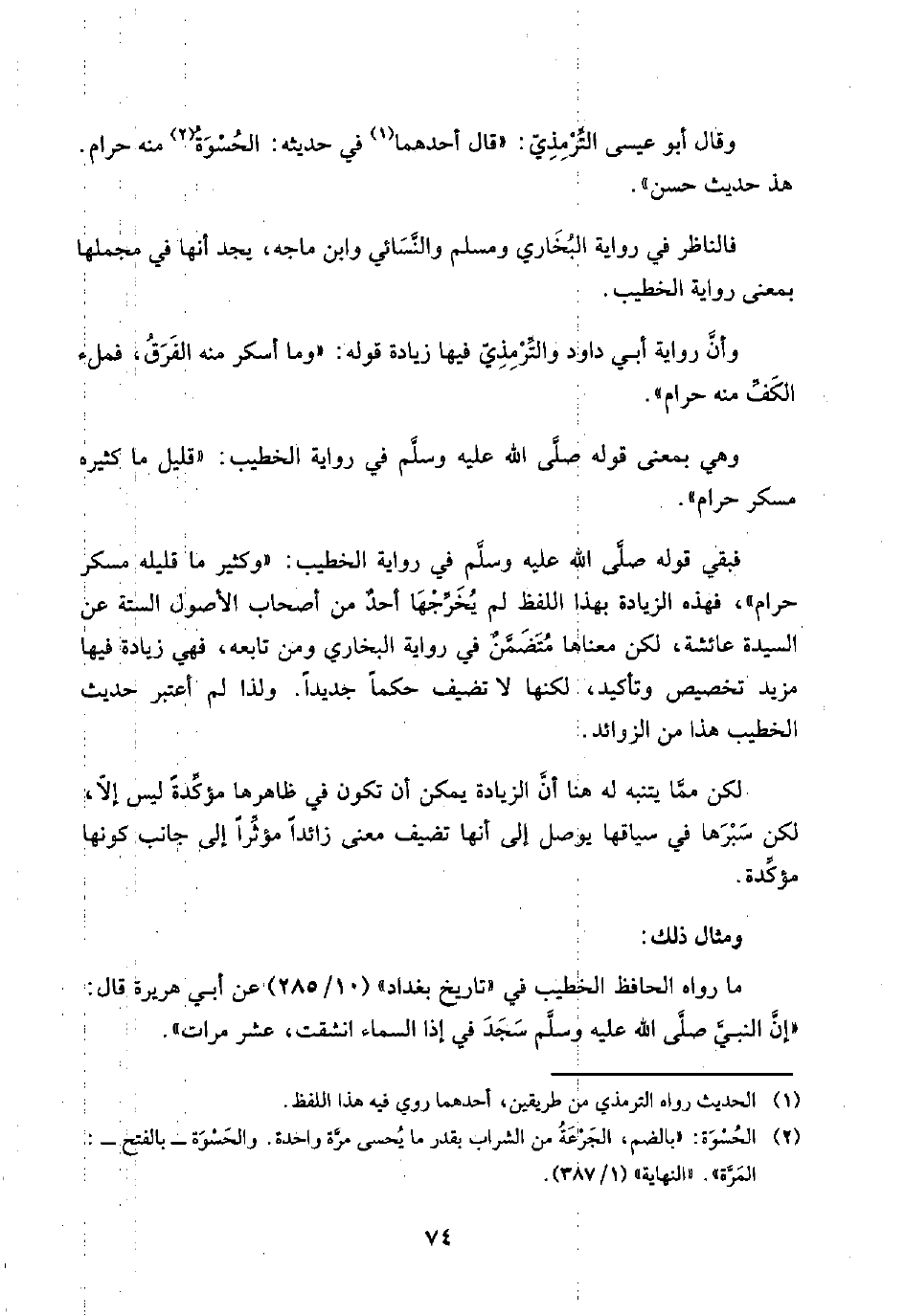 وقال أبو عيسى التِّرْمِذِيّ: "قال أحدهما (¬١) في حديثه: الحُسْوَةُ (¬٢) منه حرام. هذا حديث حسن".