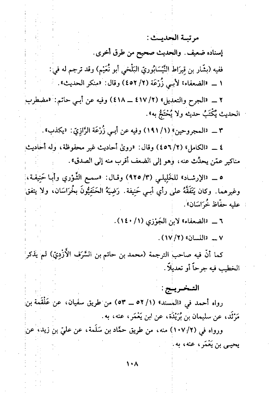 ٦ - "الضعفاء" لابن الجَوْزي (١/ ١٤٠).