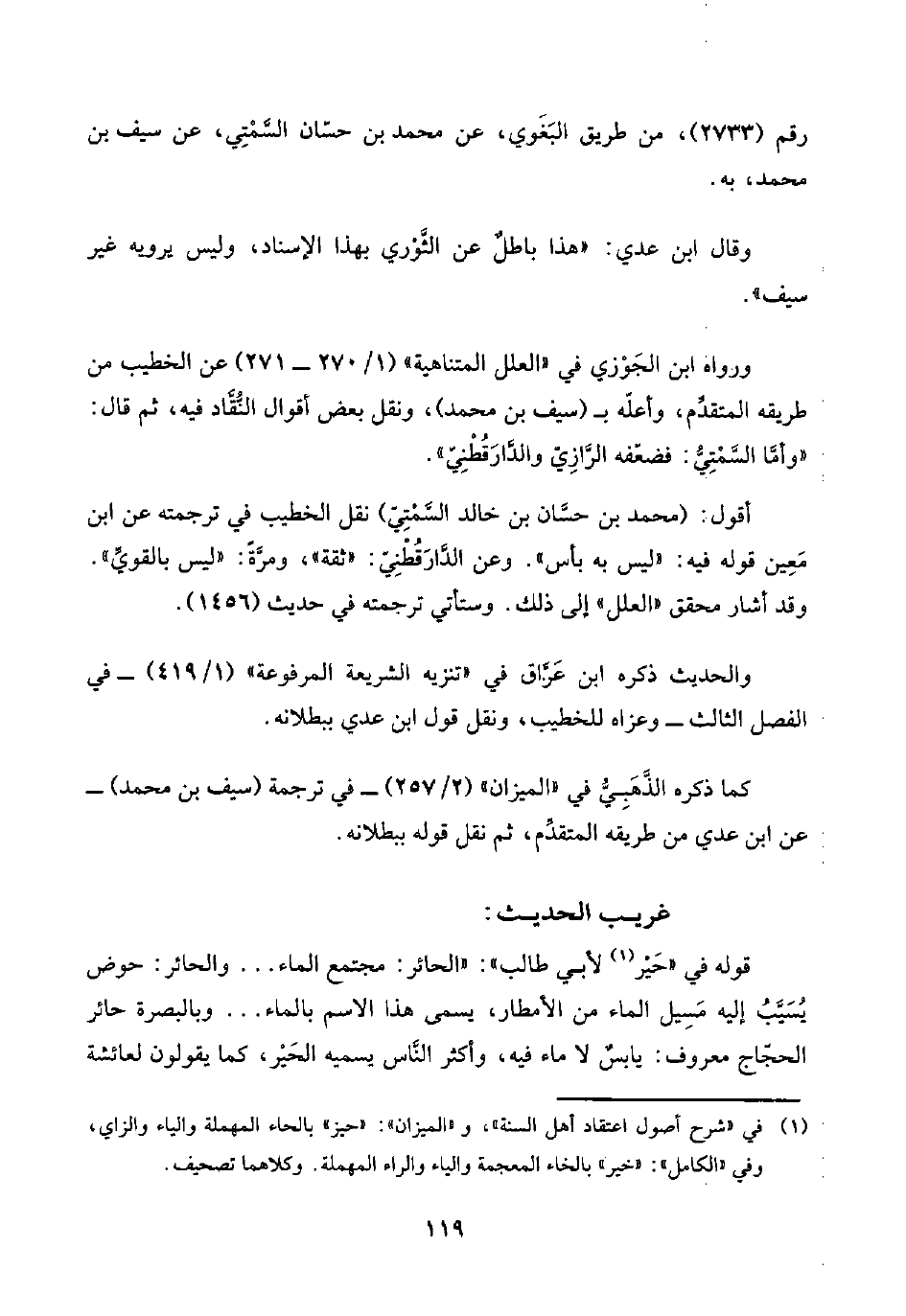 وقال ابن عدي: "هذا باطلٌ عن الثَّوْري بهذا الإسناد، وليس يرويه غير سيف".